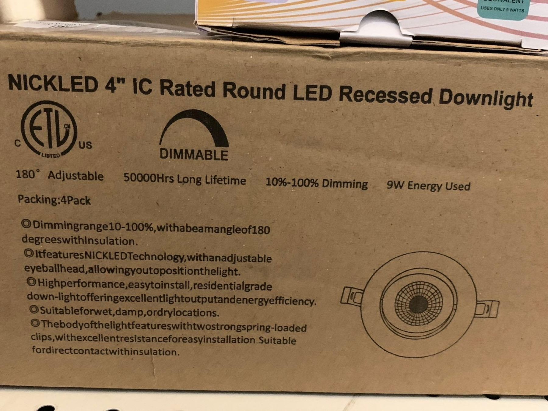 Nick LED 9W Nickled 4" IC Rated Round LED Recessed Downlight Pack of 4