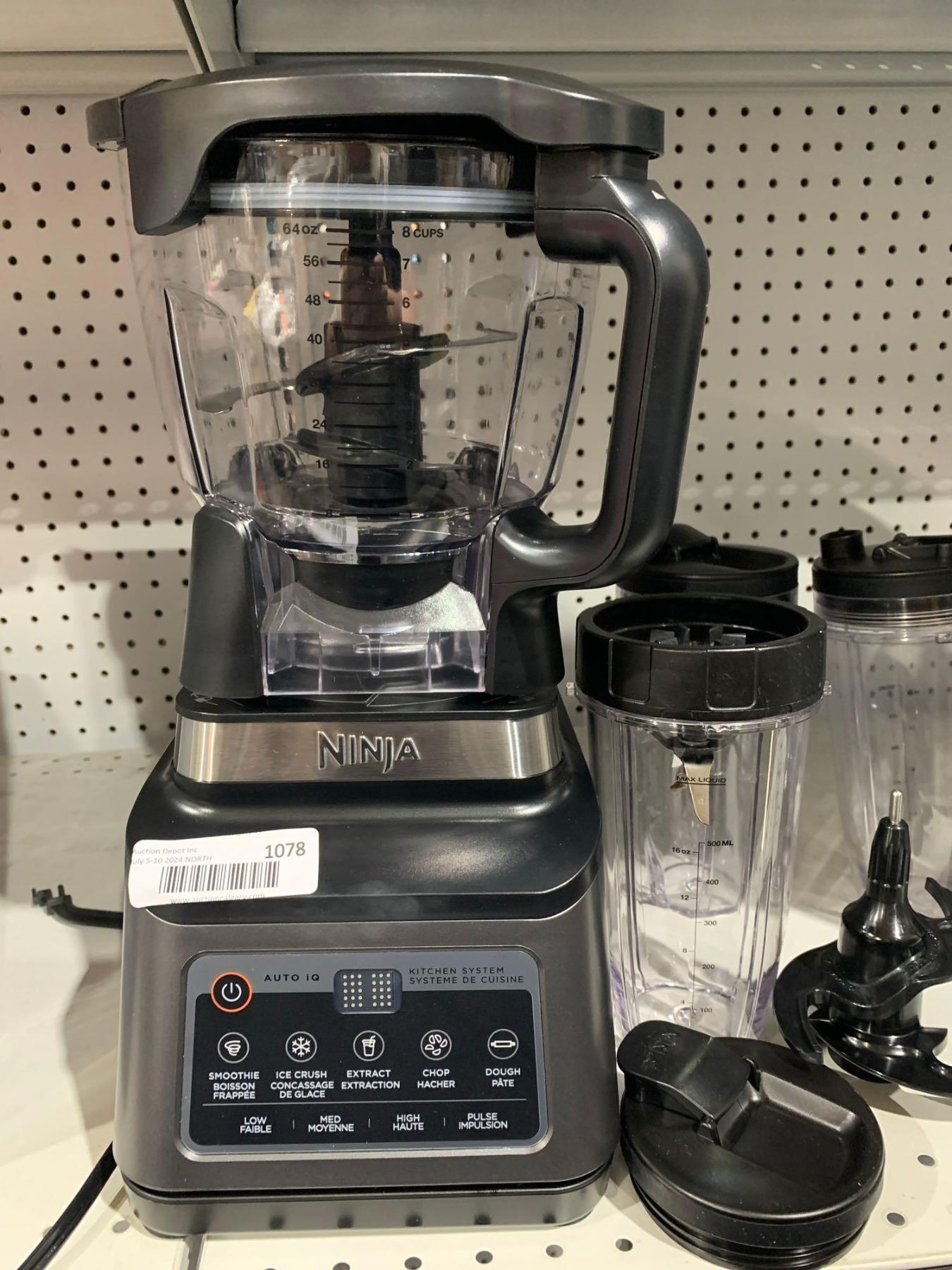 Ninja BN801 Professional Plus Kitchen System, 1400 WP, 5 Functions for Smoothies, Chopping, Dough & More with Auto IQ, 72-oz.* Blender Pitcher, 64-oz. Processor Bowl, (2) 24-oz.