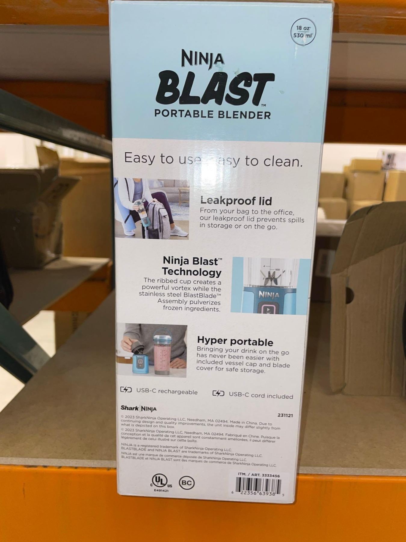 Ninja Blast Portable Blender, Cordless, 16oz. Vessel, Personal Blender for Shakes & Smoothies, BPA Free, Leakproof Lid & Sip Spout, USB-C Rechargeable, Dishwasher Safe Parts, Navy, BC100NVC