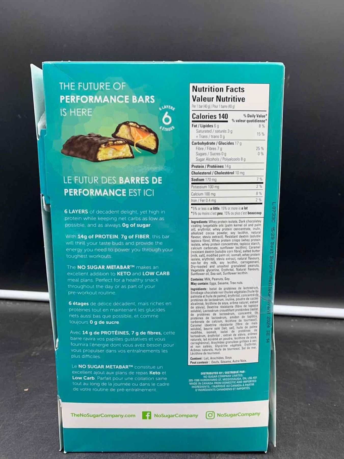 No Sugar Meta Bar Performance Bars- Chocolate Caramel & Peanut Flavour (12 x 40g)