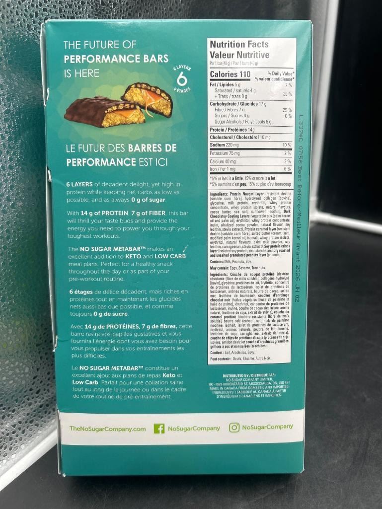 NoSugar Company MetaBar Performance Bars – Chocolate Caramel Flavor, 6 Bars