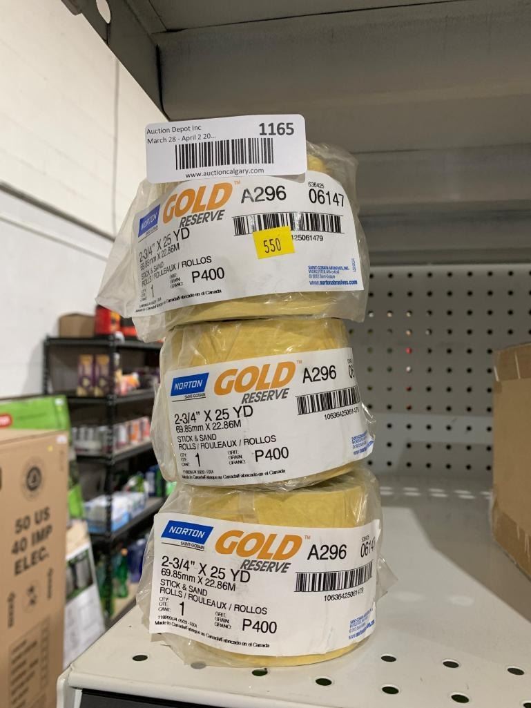 Norton Gold Reserve 2-3/4 in x 25 yd Stick and Sand Rolls P400 Grit Lot of 3