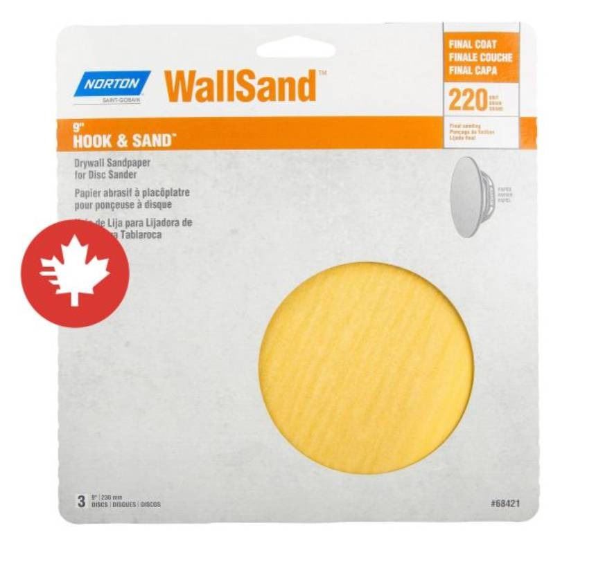 Norton Hook & Sand Drywall Sandpaper for Disk Sander – 9″ – Gr. 220 – 3/pck