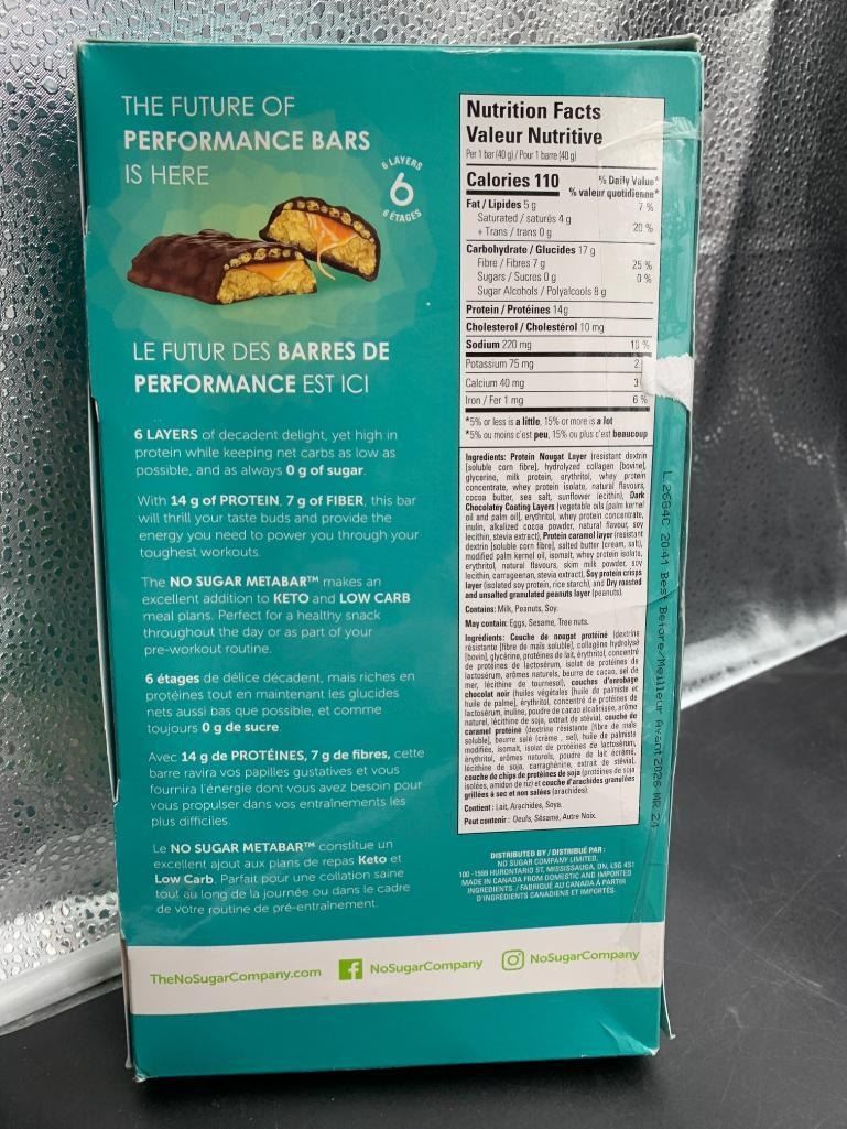 Nosugar Company Metabar Performance Bars 11x40g Keto-Friendly