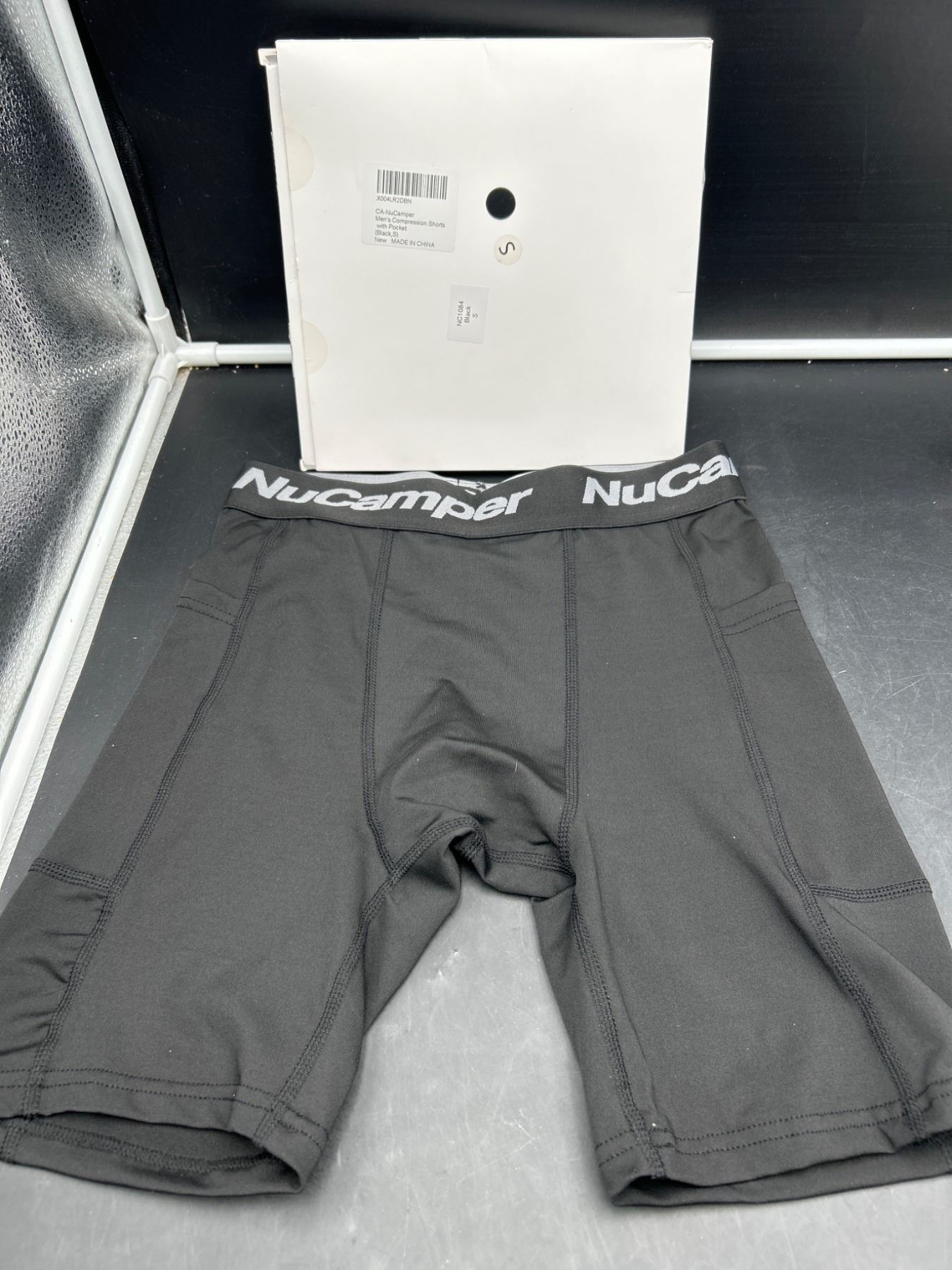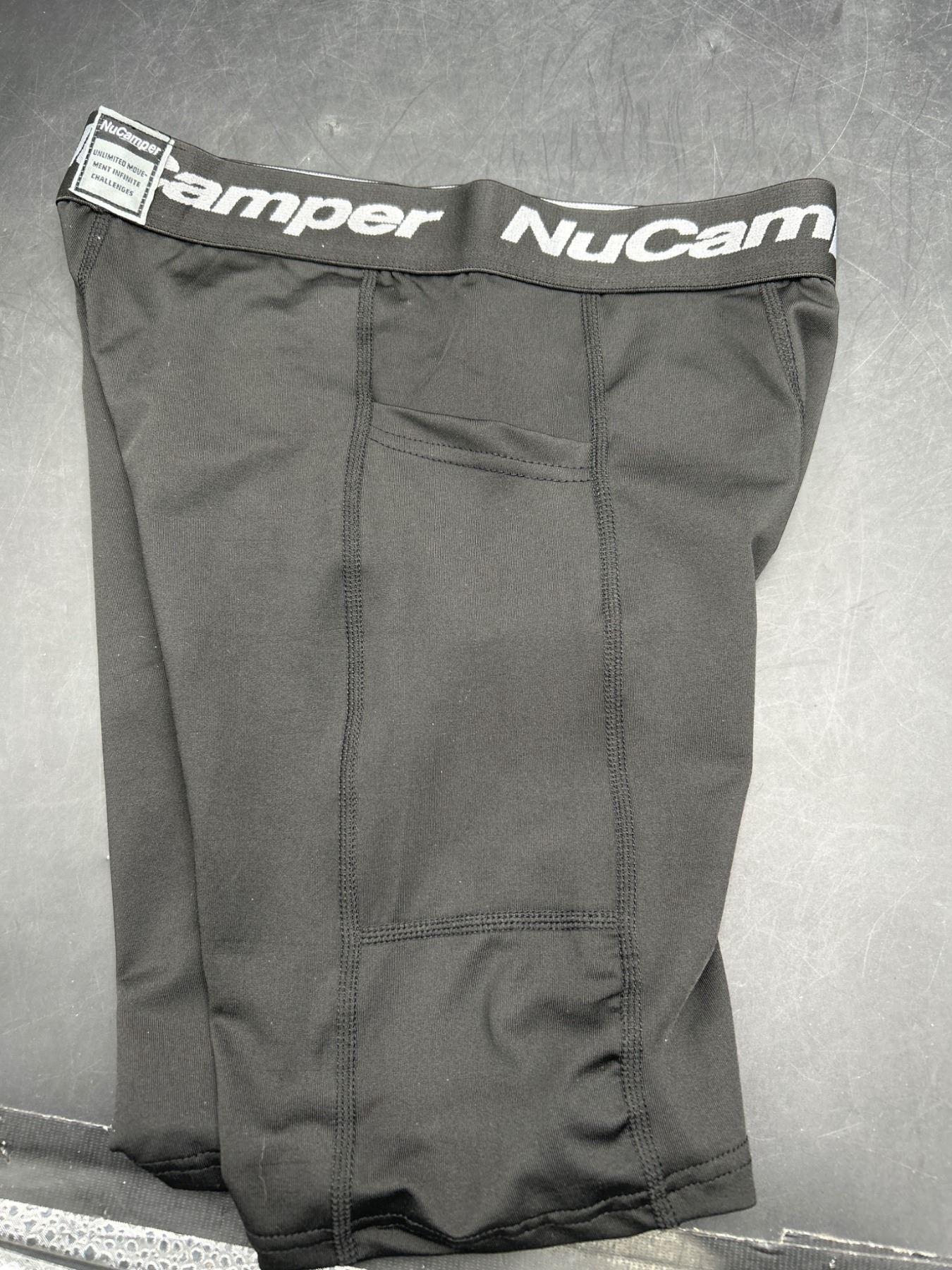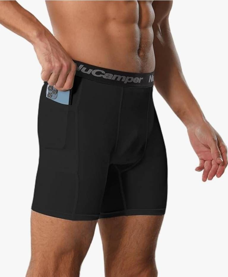 NuCamper Men’s Compression Shorts Underwear with Pocket, Black, Size S