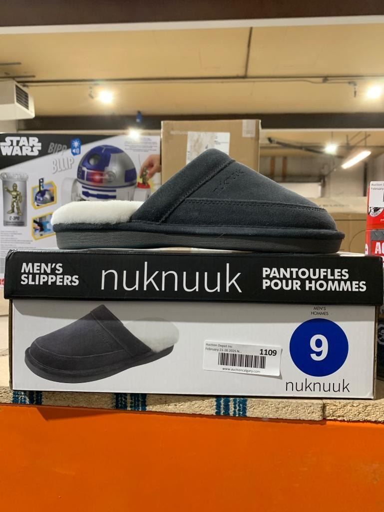 Nuknuuk Men’s Slippers Size 9 in Grey with Faux Fur Lining