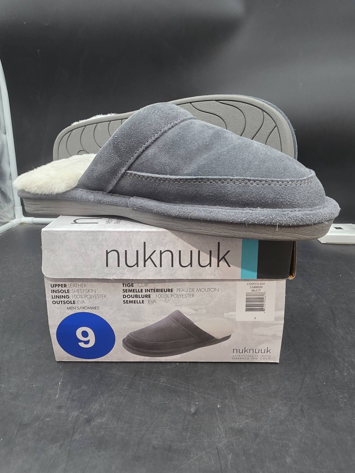 Nuknuuk Men’s Slippers with Sheepskin Insoles, Size 9