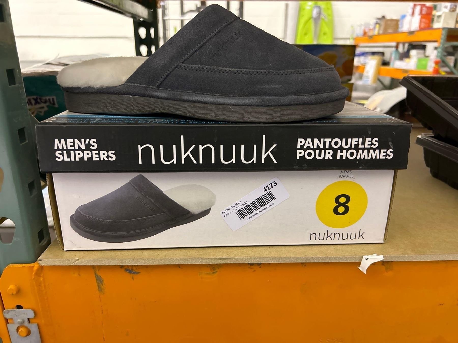 Nuknuuk mens dark grey fuzzy lined slippers size 8