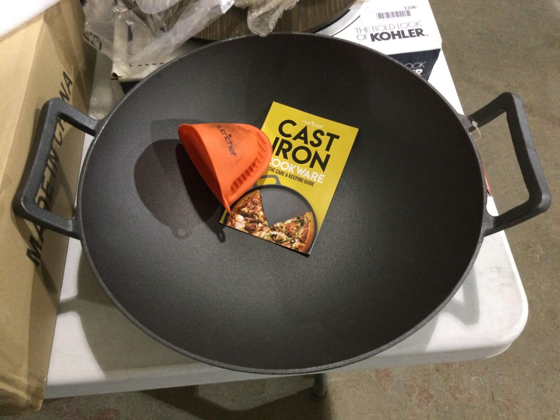 Nutrichef Cast Iron Stir Fry Pan with Wooden Lid