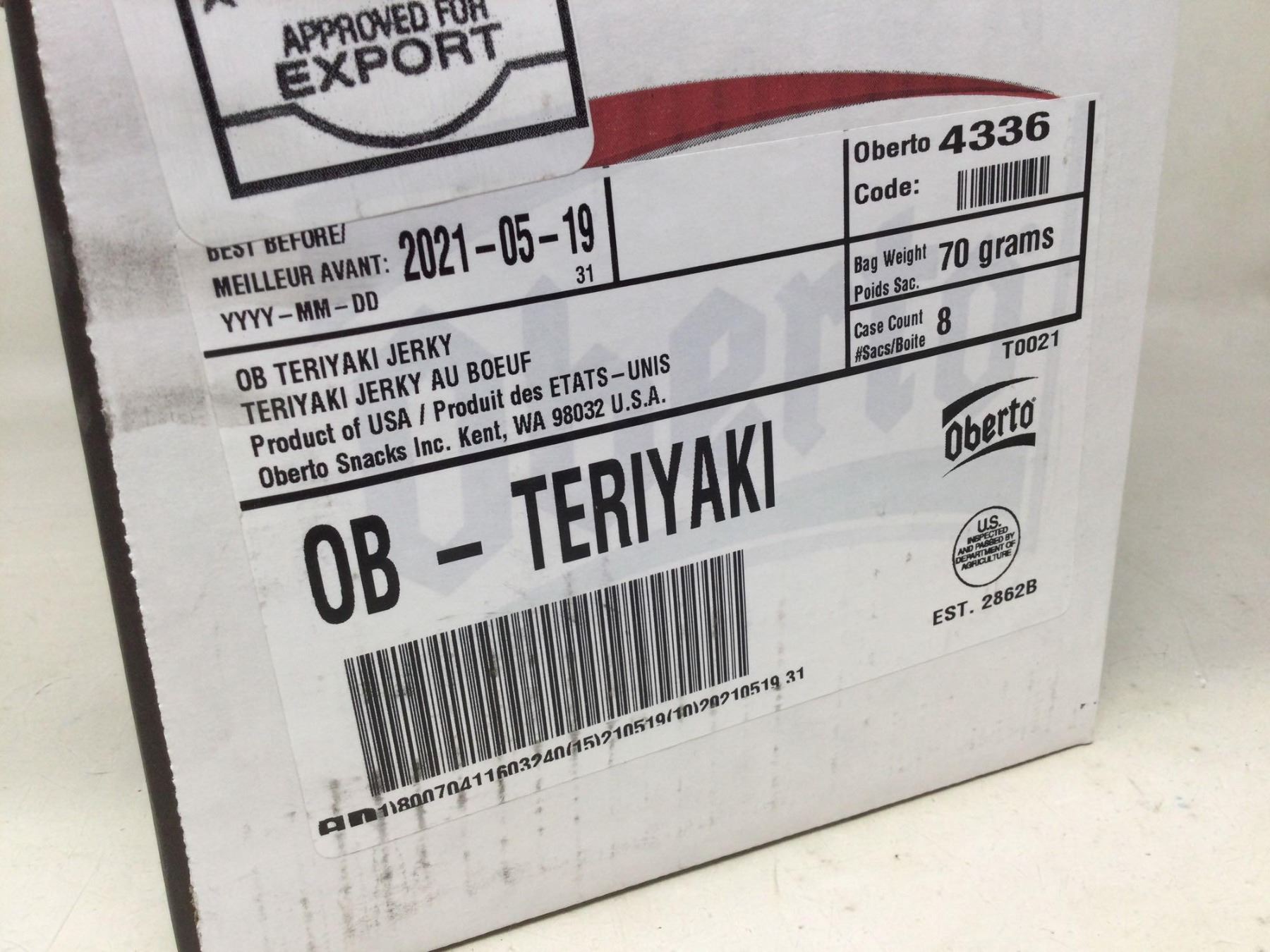 Oberto Teriyaki Flavour Beef Jerky (8 x 70g)