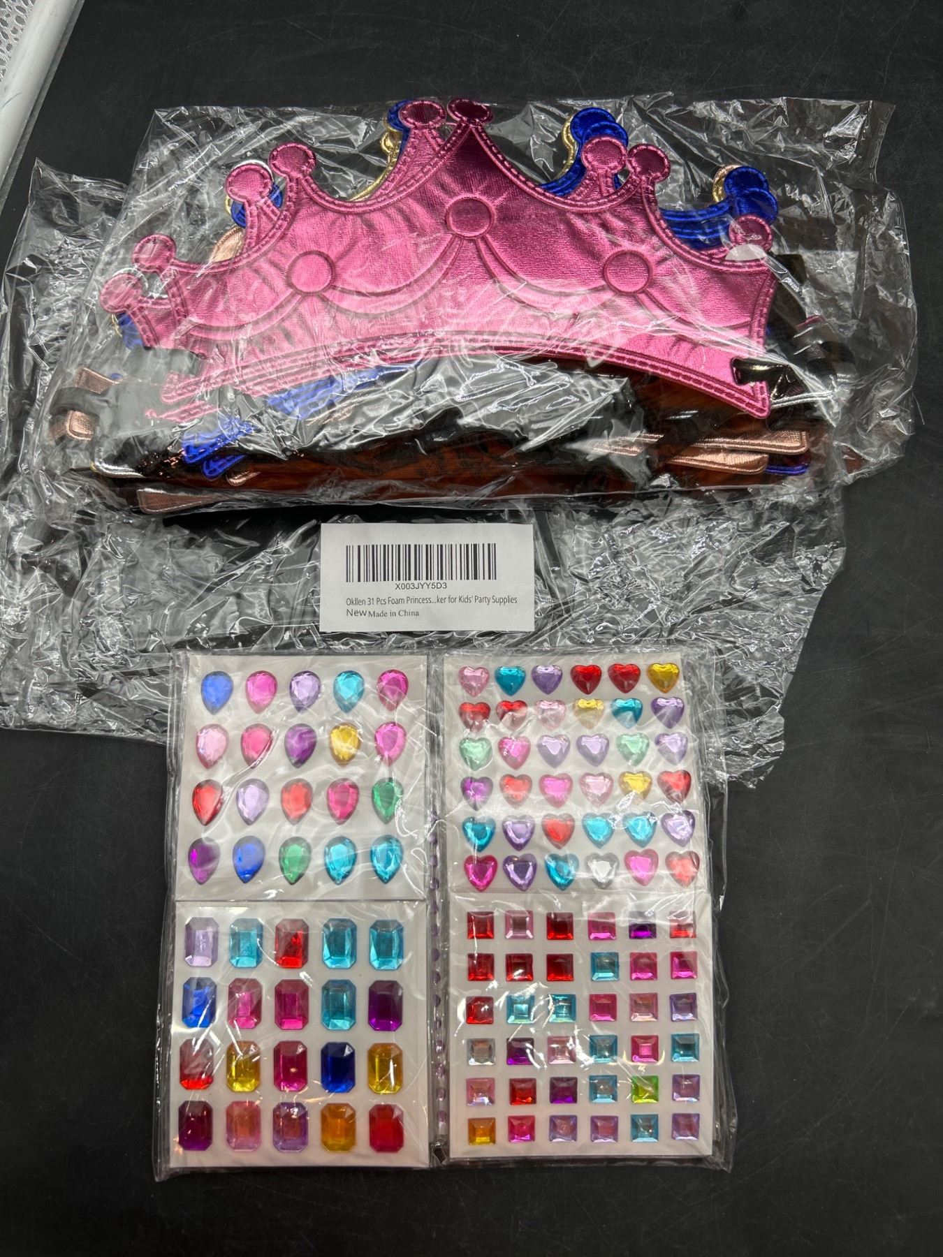 Okllen 31Pcs Foam Princess Tiaras and Crowns Set, Making Your Own Tiaras and Crowns with Diamond Sticker