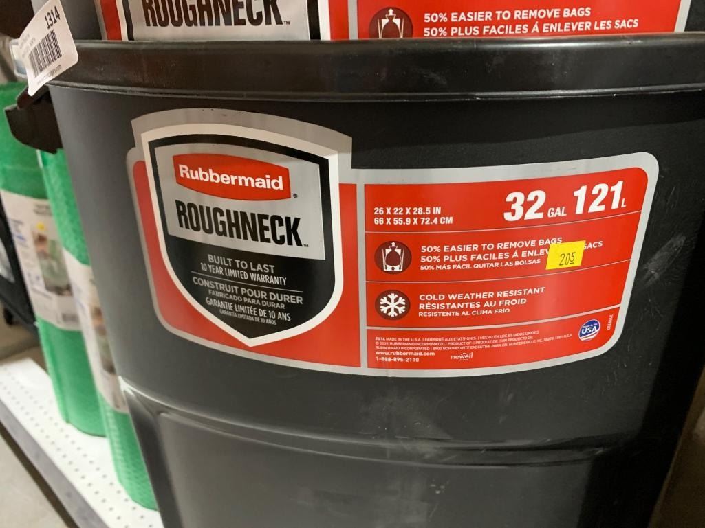 One Rubbermaid Roughneck 32-Gallon Trash Can with lid , Black