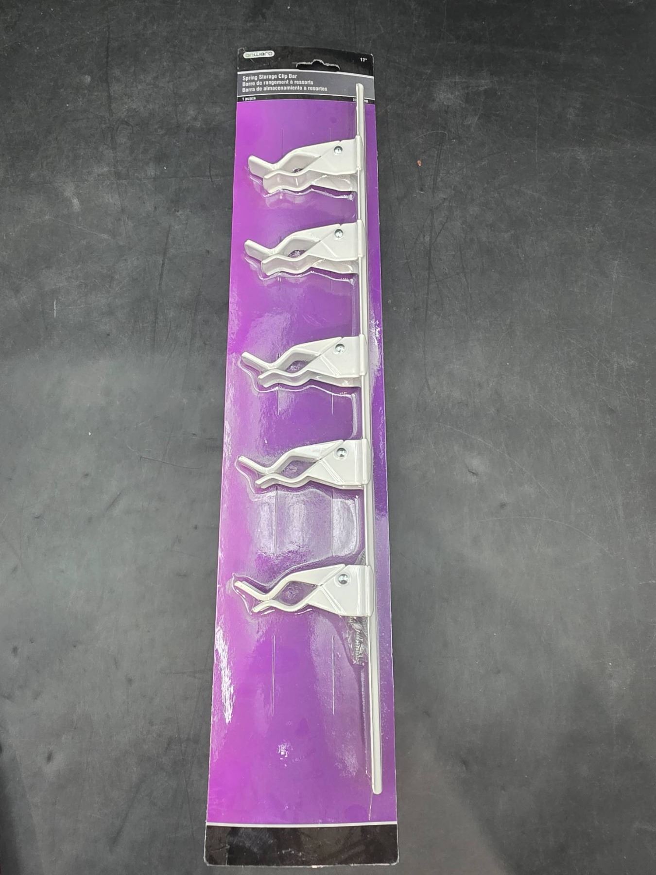 Onward 17-Inch Spring Storage Clip Bar with 5 Clips, Model 23304WR
