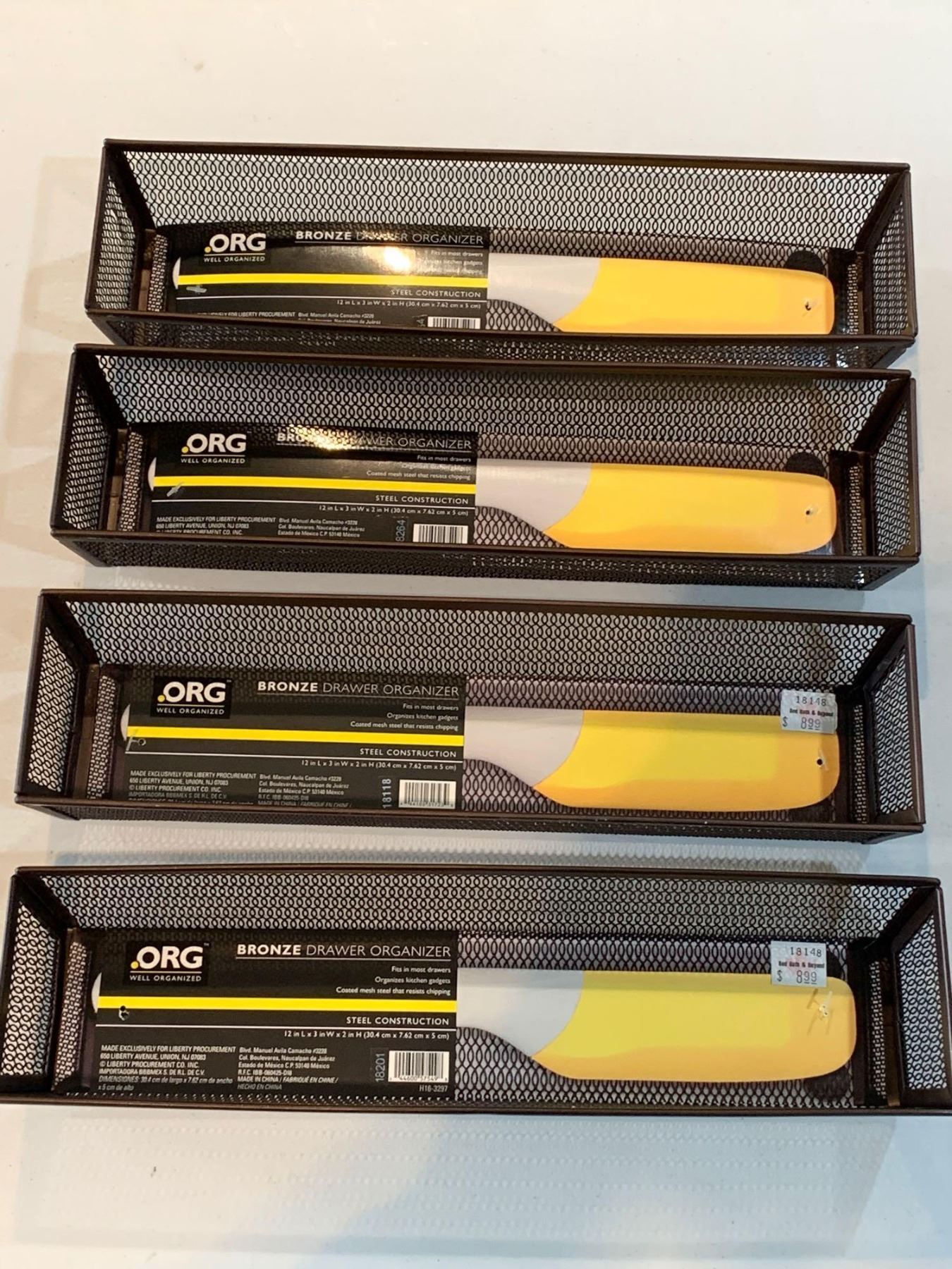 .Org Bronze Drawer Organizer 12" X 3" X 2" Steel Construction (Lot Of 4)