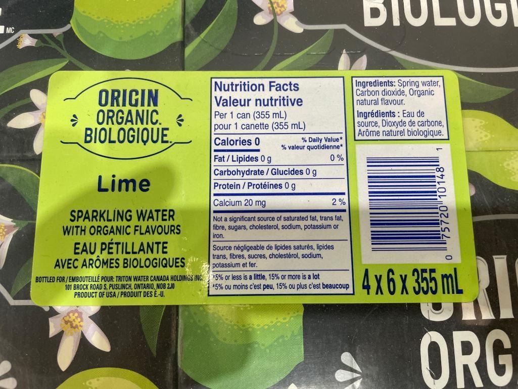 Origin Organic Lime Sparkling Water 24 Cans (355 mL Each)