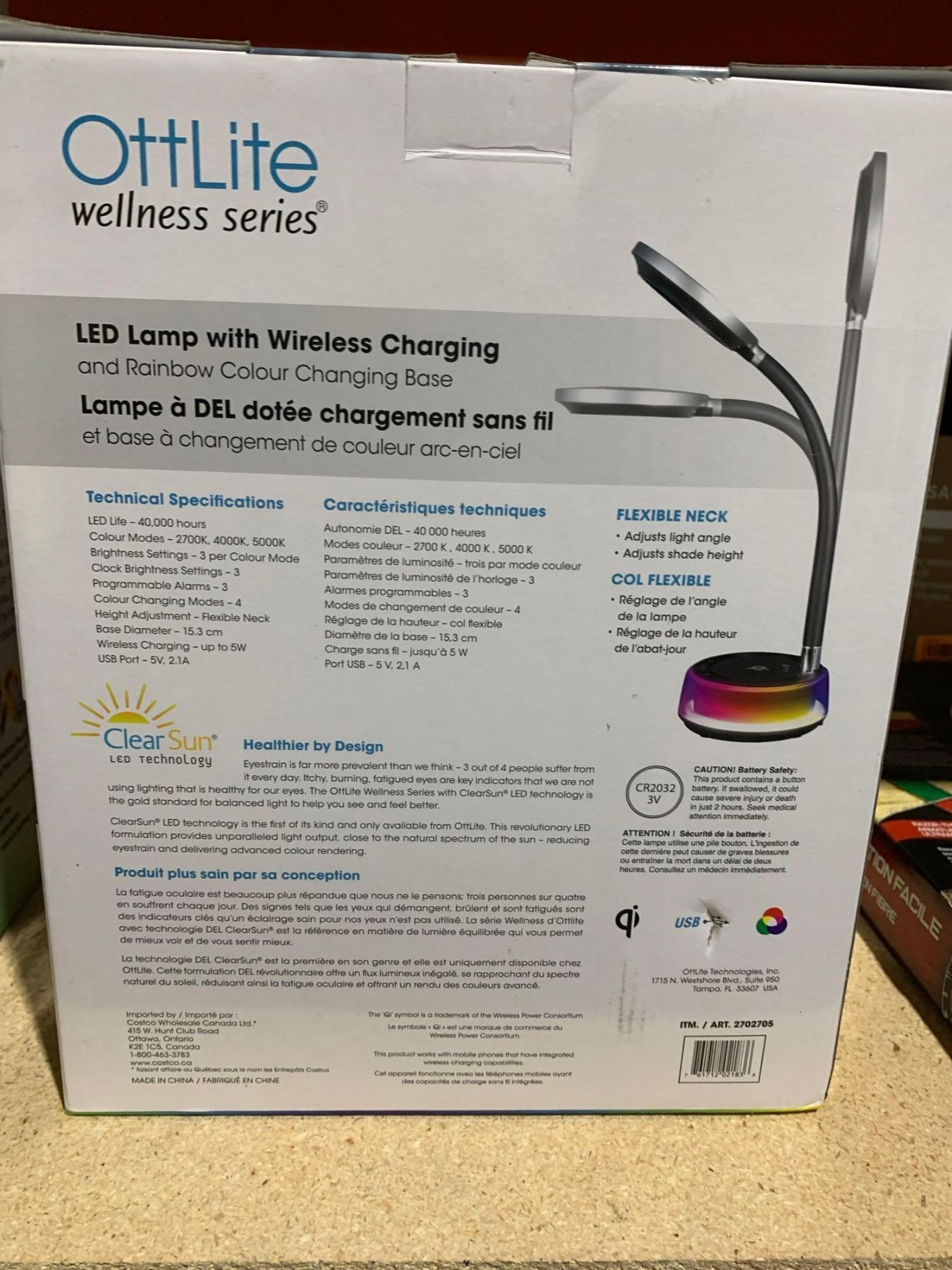 OttLite LED Lamp With Wireless Charging & Rainbow Color Changing Base