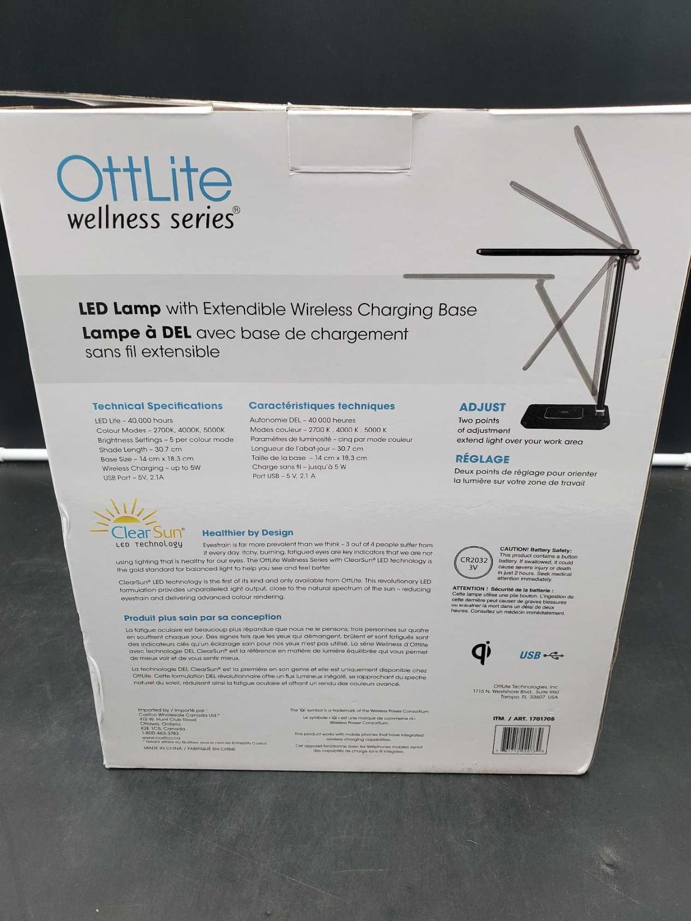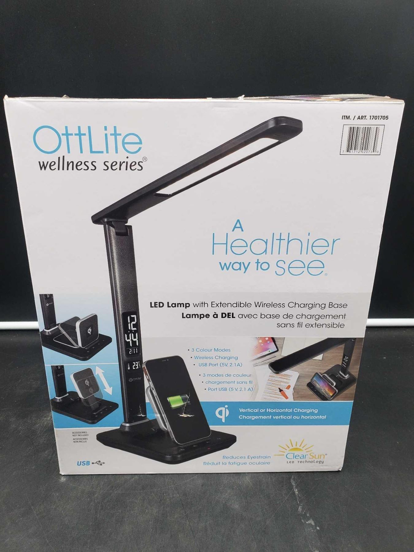 OttLite Wellness Series LED Lamp w/ Extendible Wireless Charging Base