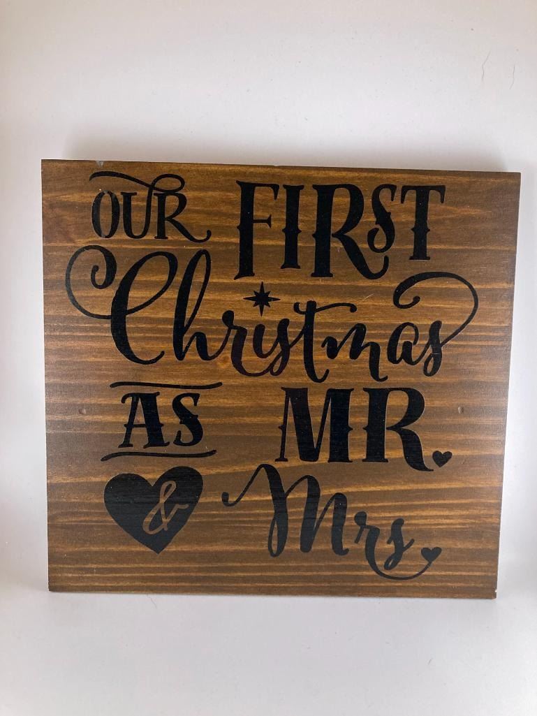 Our First Christmas as Mr &Mrs 12X12 Inches. Made of Pine. Hooks on Back