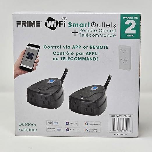 Outdoor WiFi Smart Outlets + Remote Control, Prime, Pack of 2, Great for Outdoor Lighting & Holiday