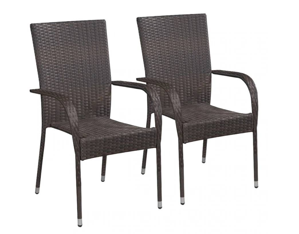 Outdoor stackable chairs 2 pcs Resin wicker Brown