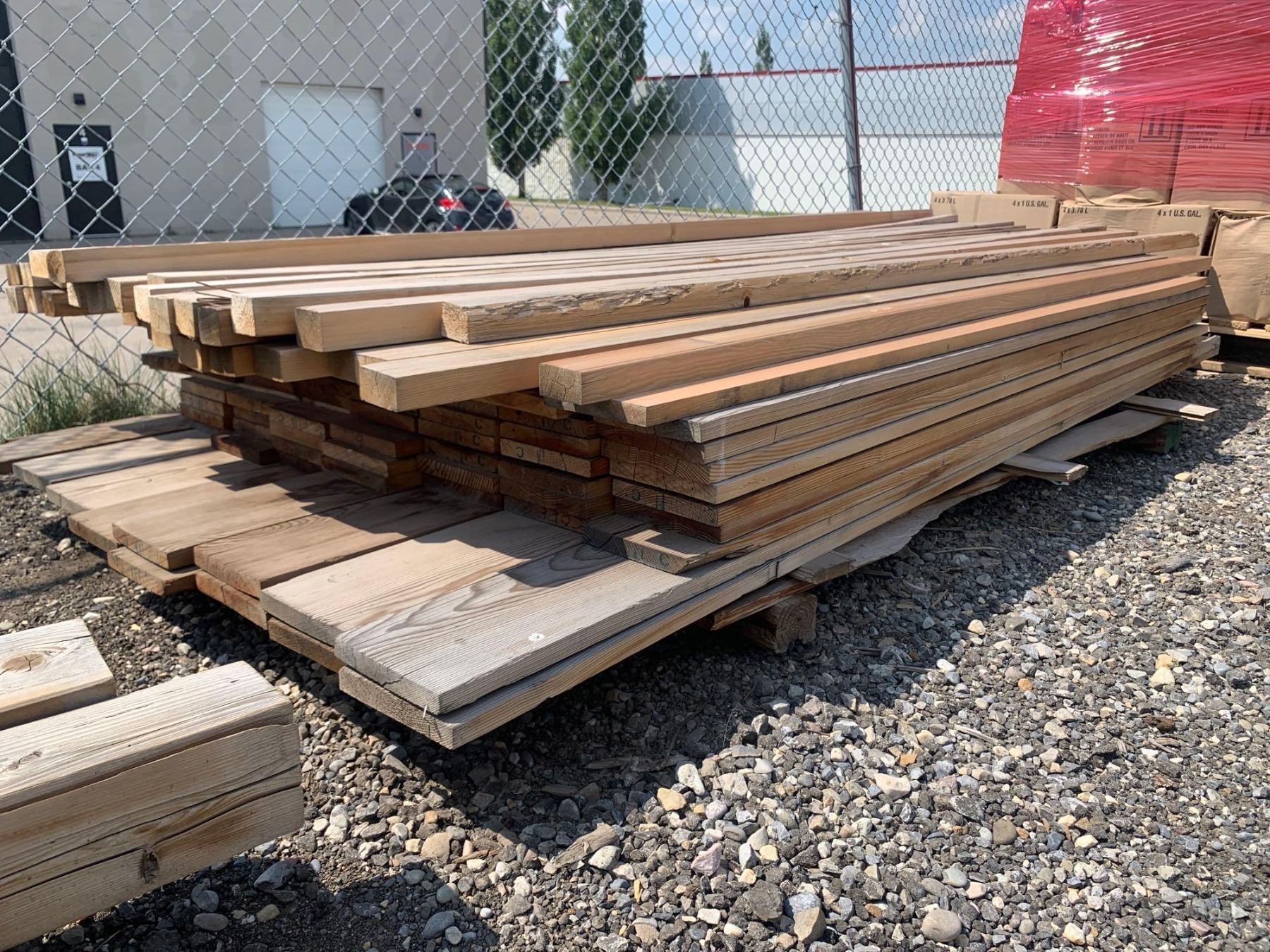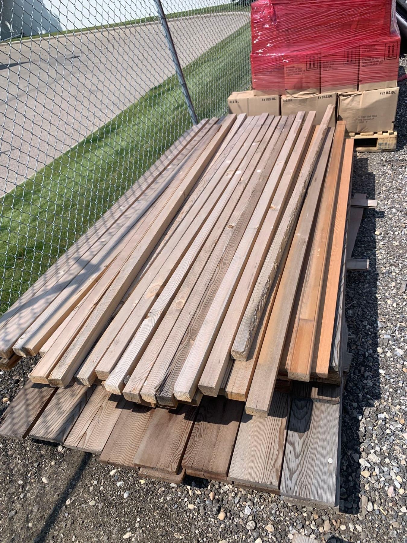 PALLET LOT ASSORTED LUMBER 2X2, FENCE BOARDS , ETC AS PICTURED