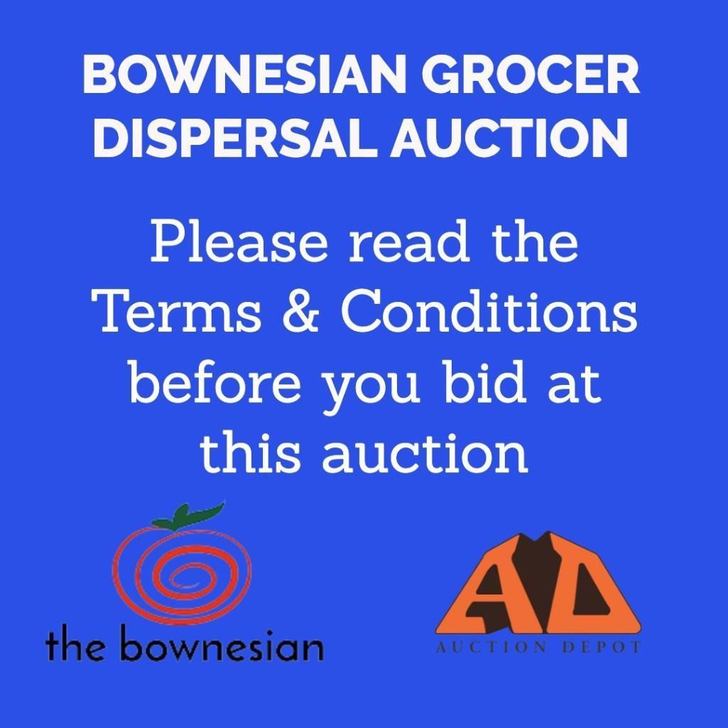3. PICK UP & REMOVAL:  ALL ITEMS MUST BE REMOVED FROM THE SALE SITE ( BOWNESIAN GROCER 7948 Bowness Rd NW, Calgary ) ON MARCH 10 & 11, 2022. PICK UP TIMES ARE 9AM-3PM NO EXCEPTIONS.  ANY ITEMS NOT REMOVED BEFORE THE DEADLINE WILL BE FORFEITED WITHOUT REFUND. BUYER IS RESPONSIBLE FOR LOADING AND REMOVING. ALL DISCONNECTIONS MUST BE MADE BY LICENSED TRADESPERSONS AT THE ARRANGEMENT AND COST OF THE BUYER.BUYER IS RESPONSIBLE FOR TOOLS, EQUIPMENT AND MANPOWER TO LOAD THEIR ITEMS.