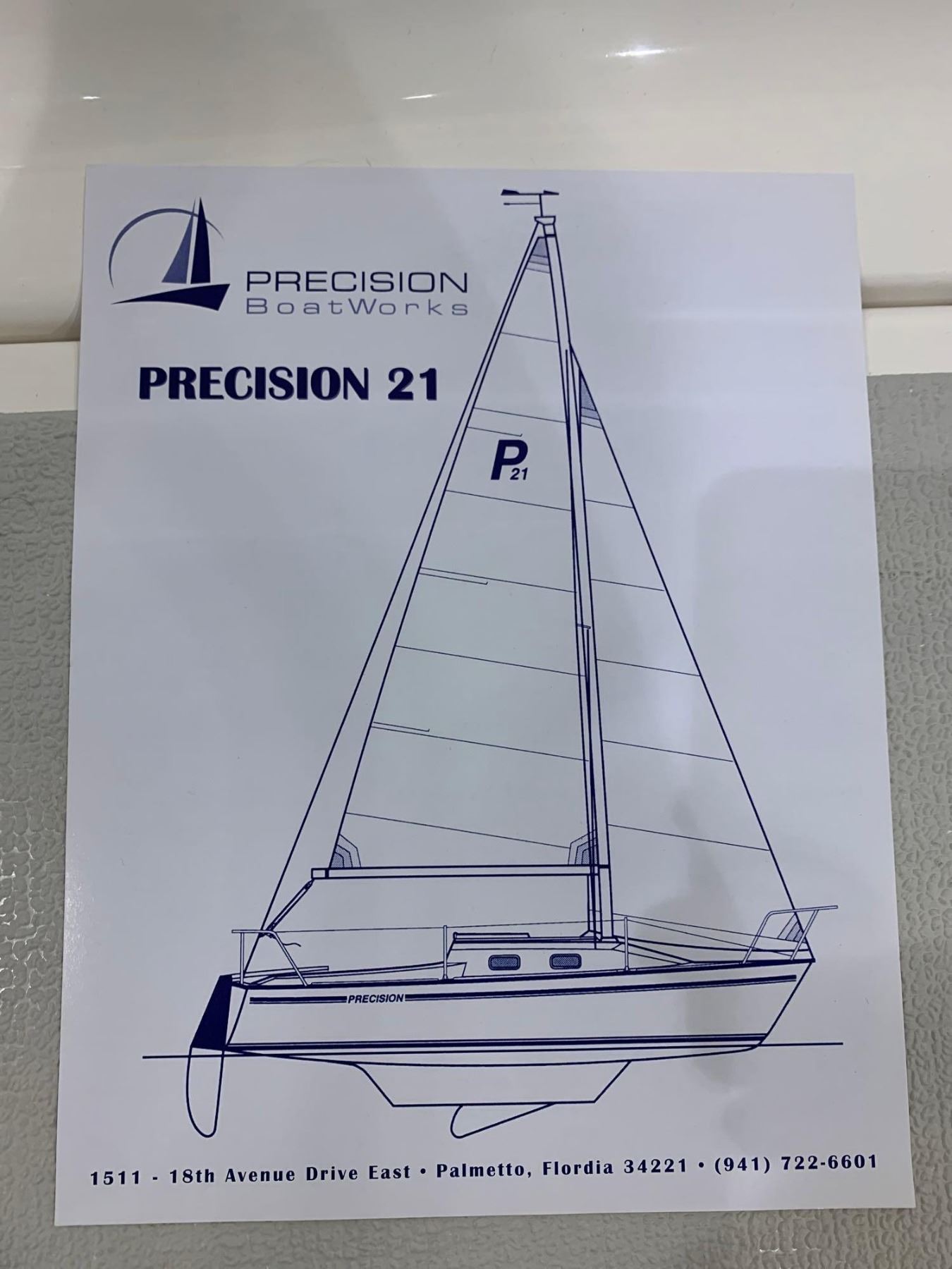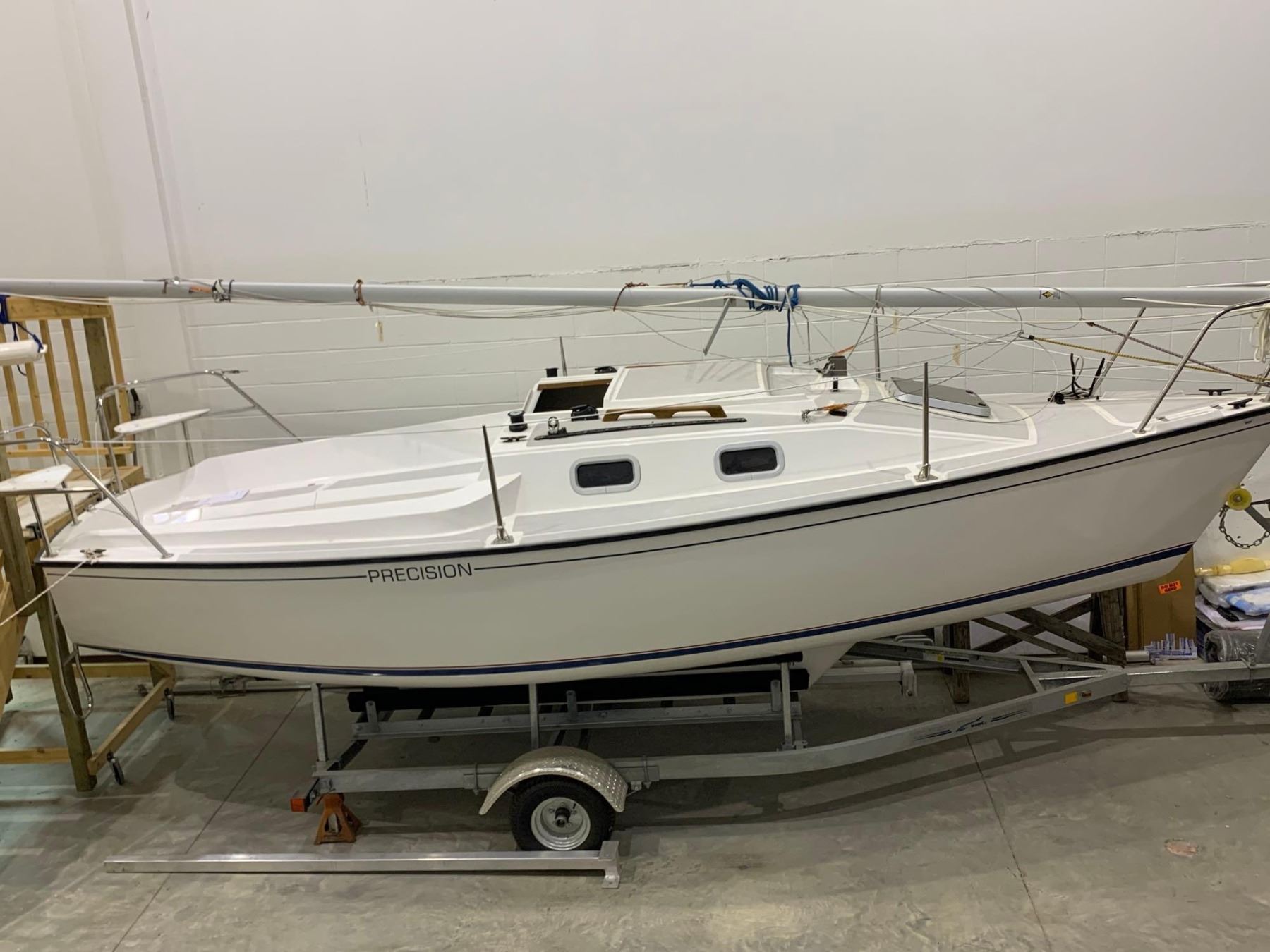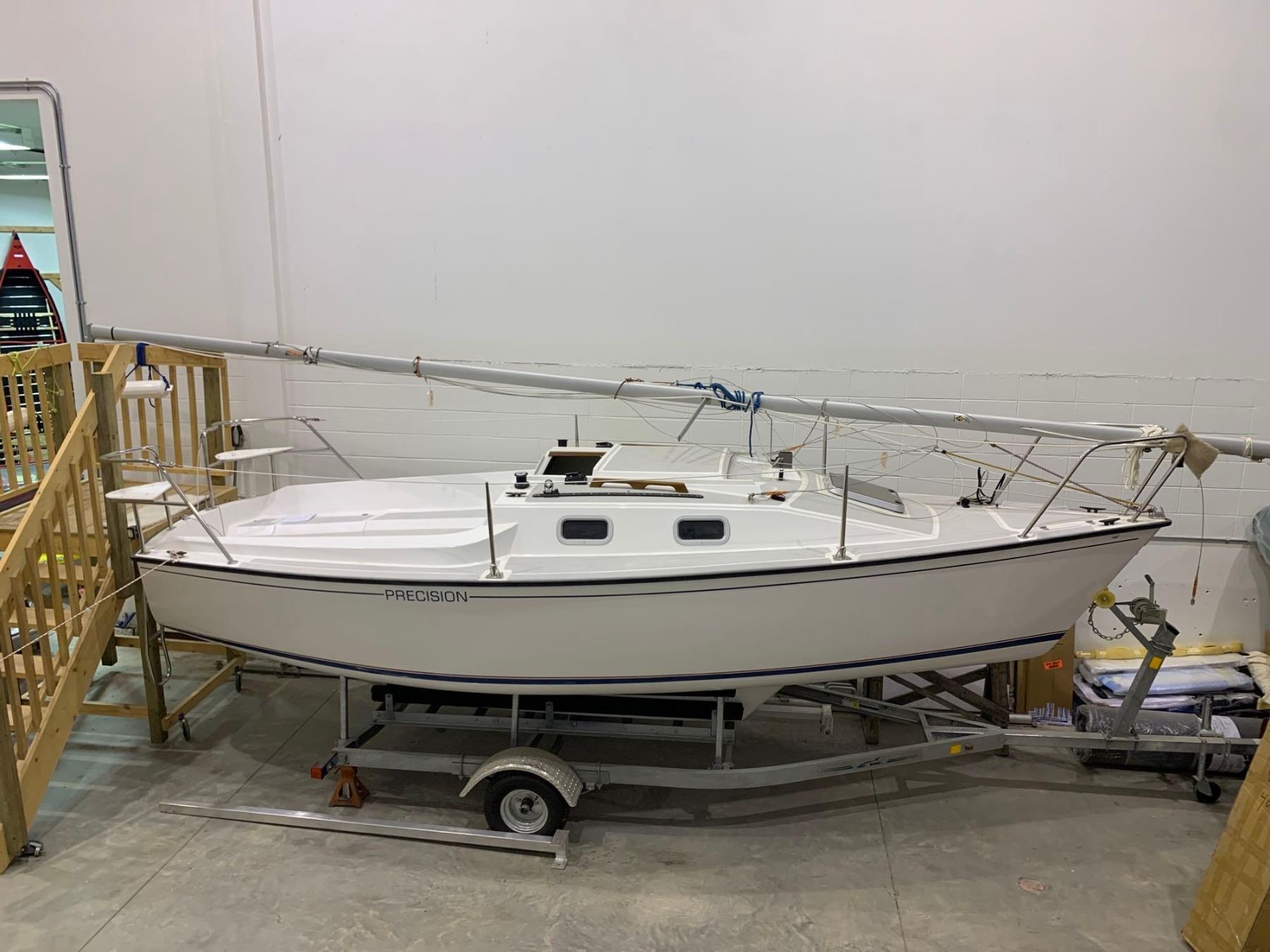 PRECISION 21 SAILBOAT WITH TRAILER - Specs: 20'9"L, 8'3" Beam - includes all sail and accessories and trailer: NEW IN SHOWROOM  OPTIONS: 100% roller Furling Genoa, boom vang, Main sail Cover  see additional description for more details
