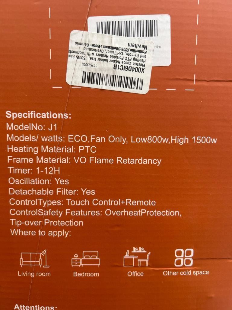 PTC Fan Heater J1 with Touch Control and Remote