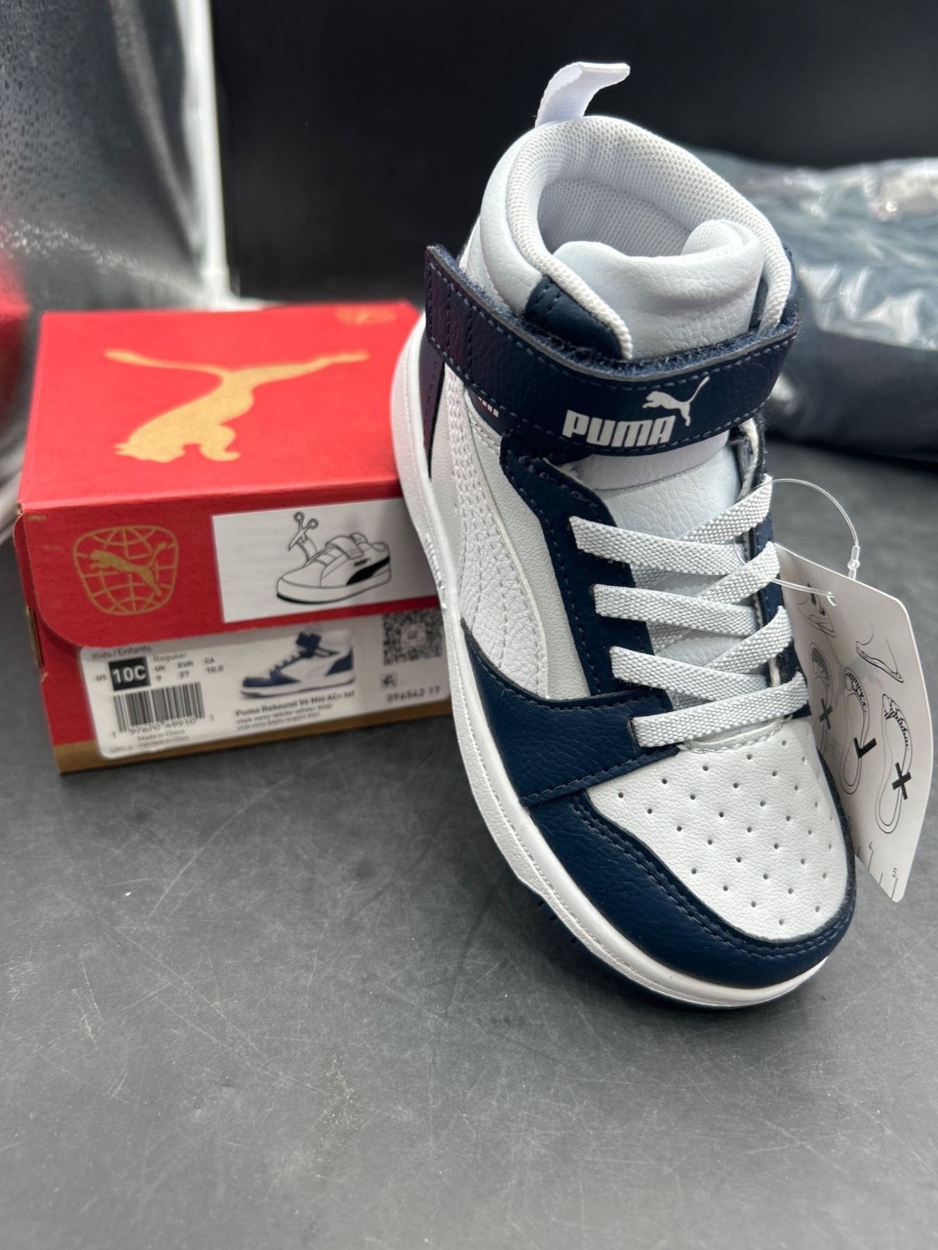 PUMA Rebound LayUp AC PS Kids’ High-Top Sneakers, Size 10C, Navy/White
