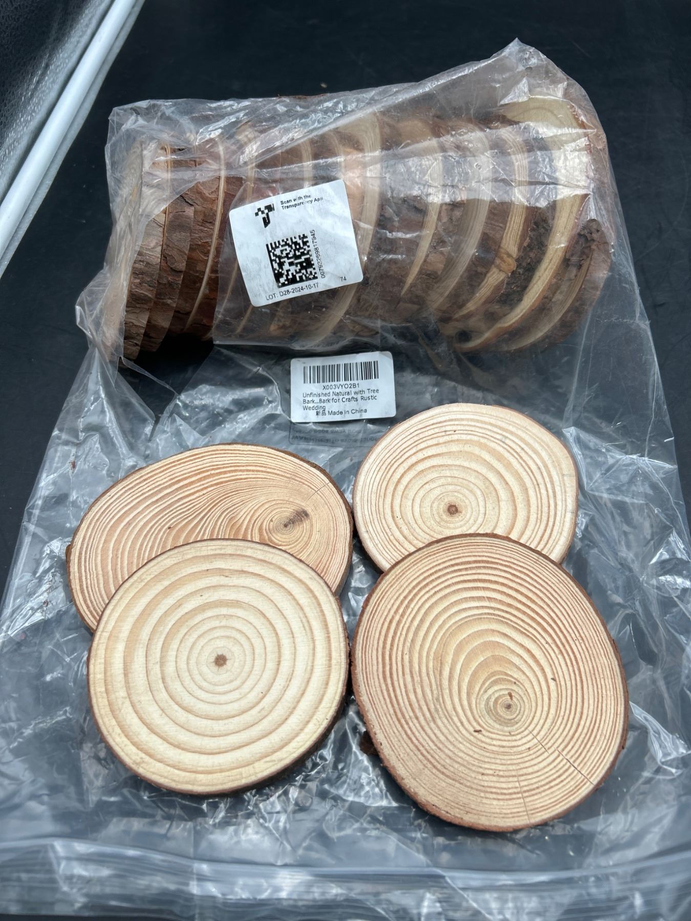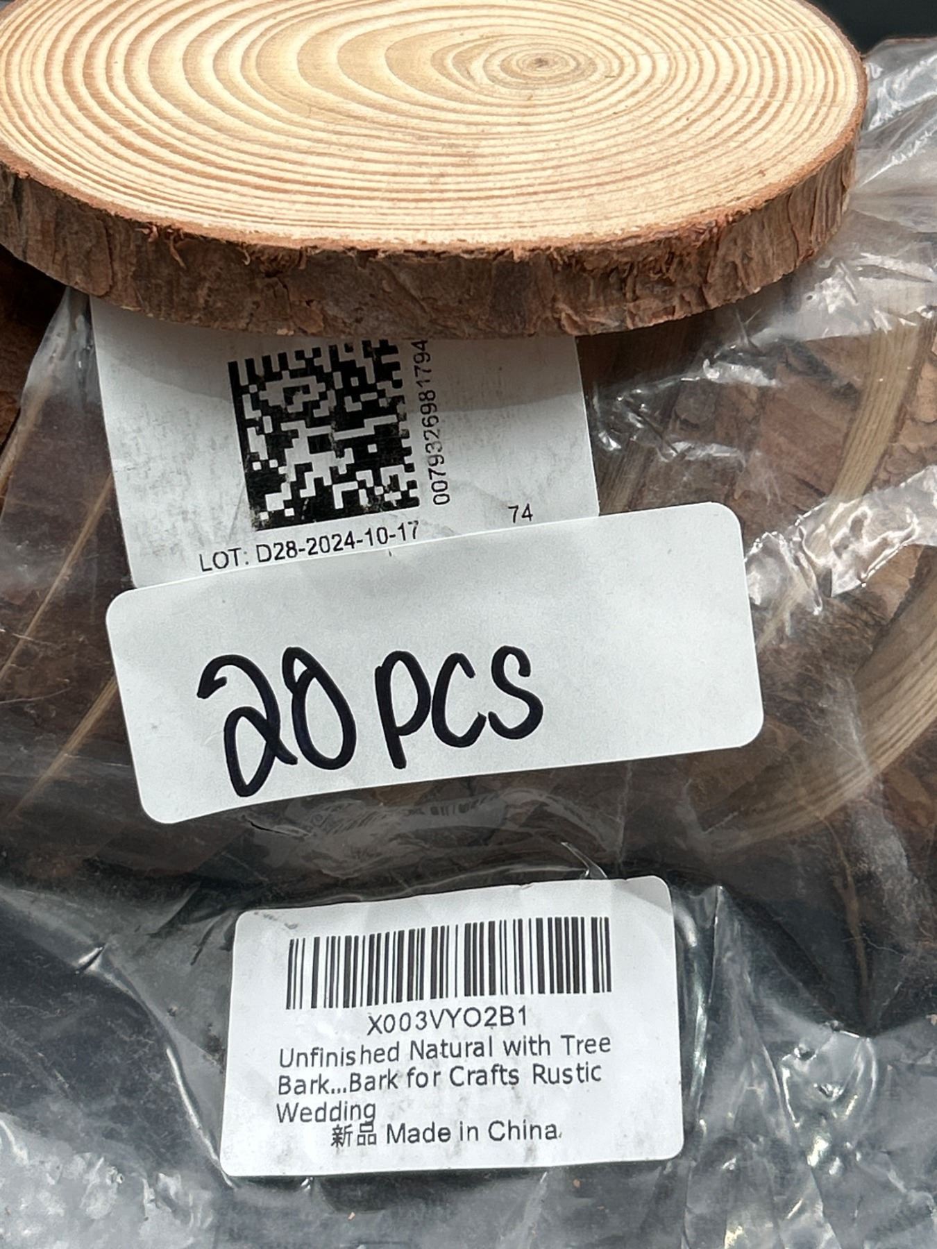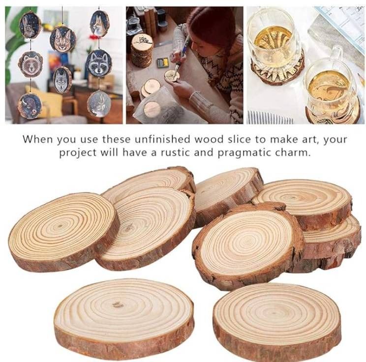 Pack of 20 Unfinished Wood Slices with Tree Bark for Crafts