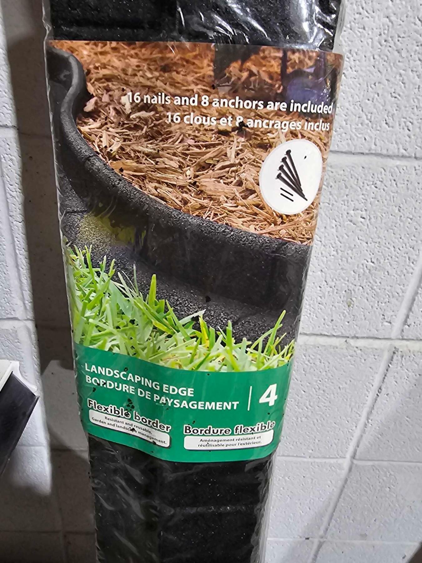 Package of 4 Heavy Duty Rubber Landscaping Edging with Anchor Spikes
