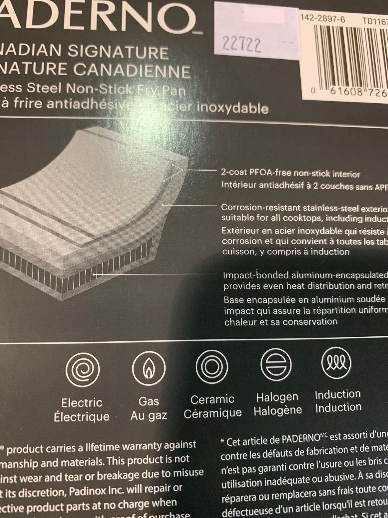 Paderno Canadian signature Stainless Steel Non Stick fry Pan (induction/electric/gas/ceramic & halogen safe) NEW
