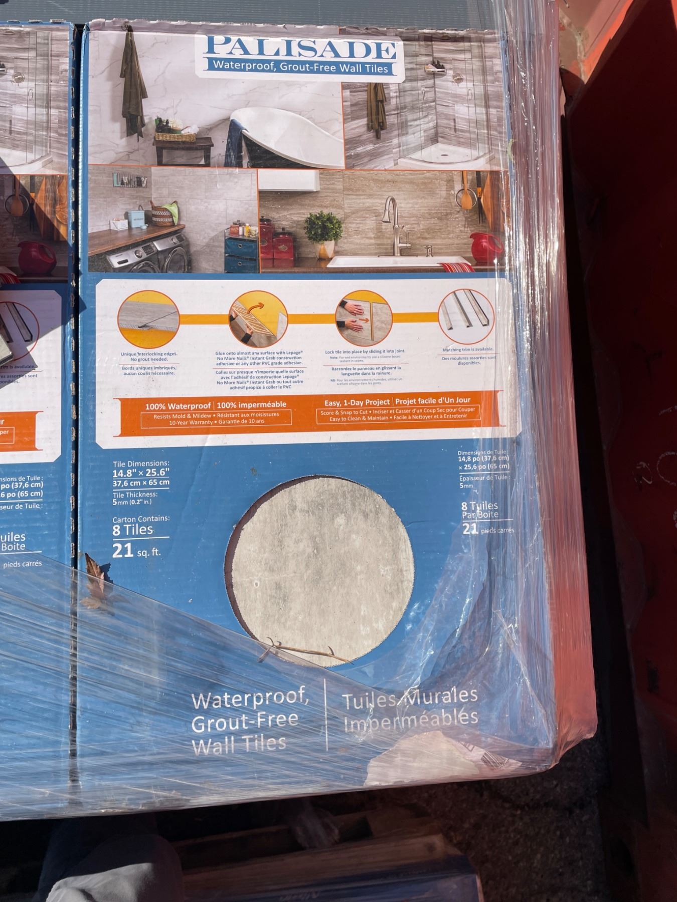 Palisade Waterproof Grout-Free Wall Tiles, 8 Tiles Per Set, 21 sq ft per box