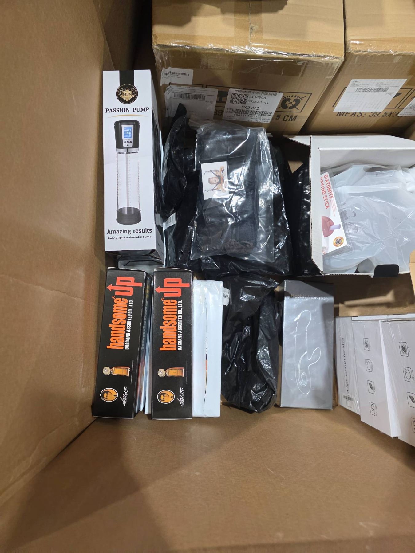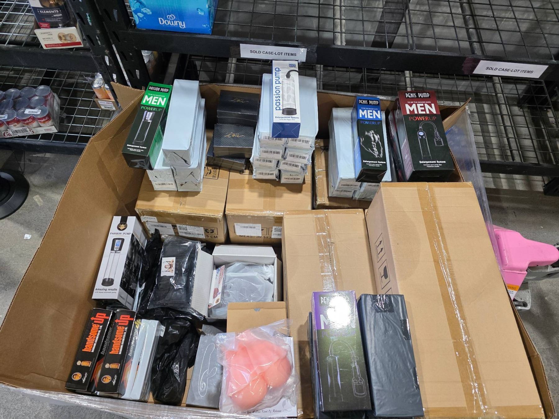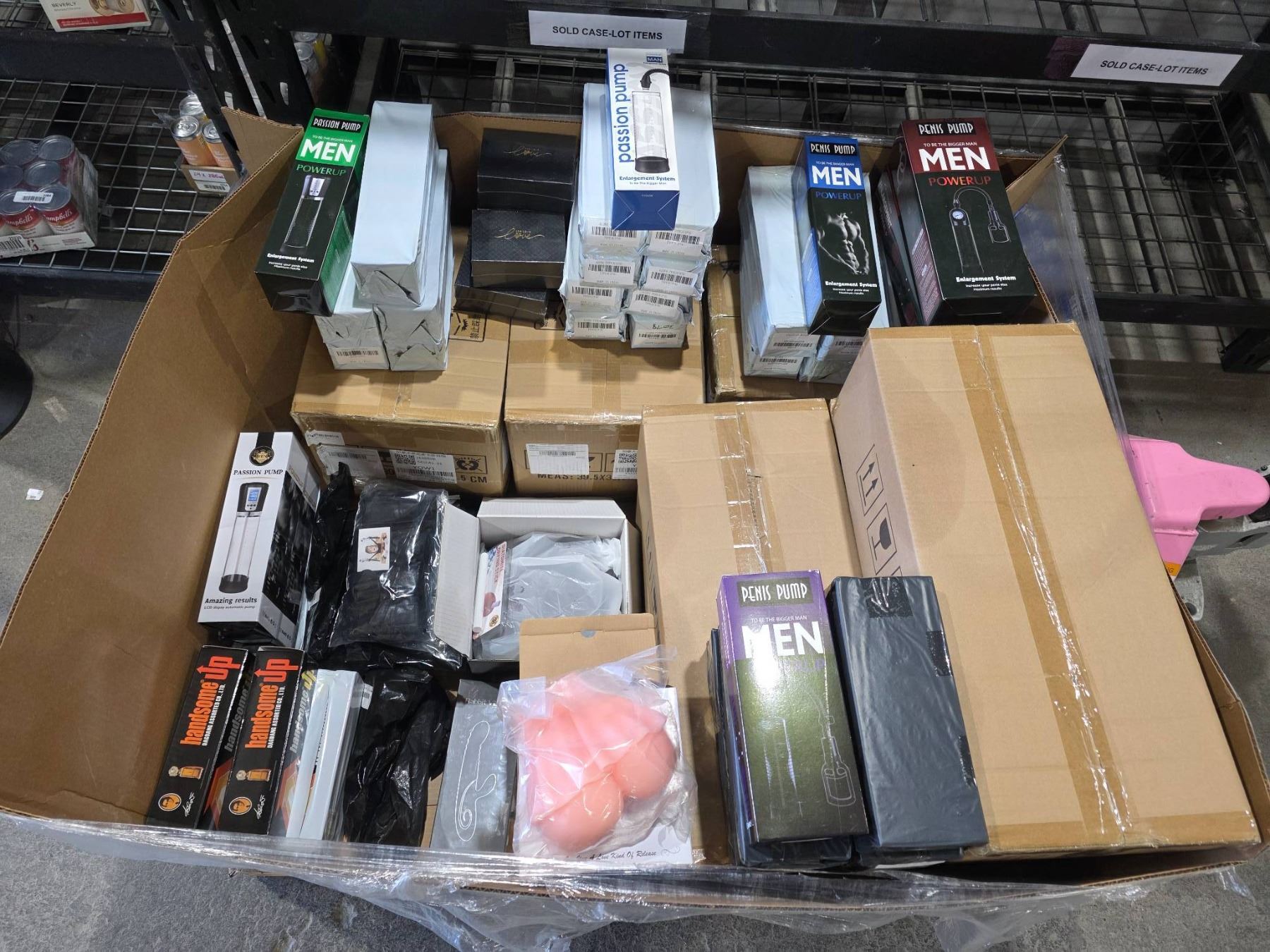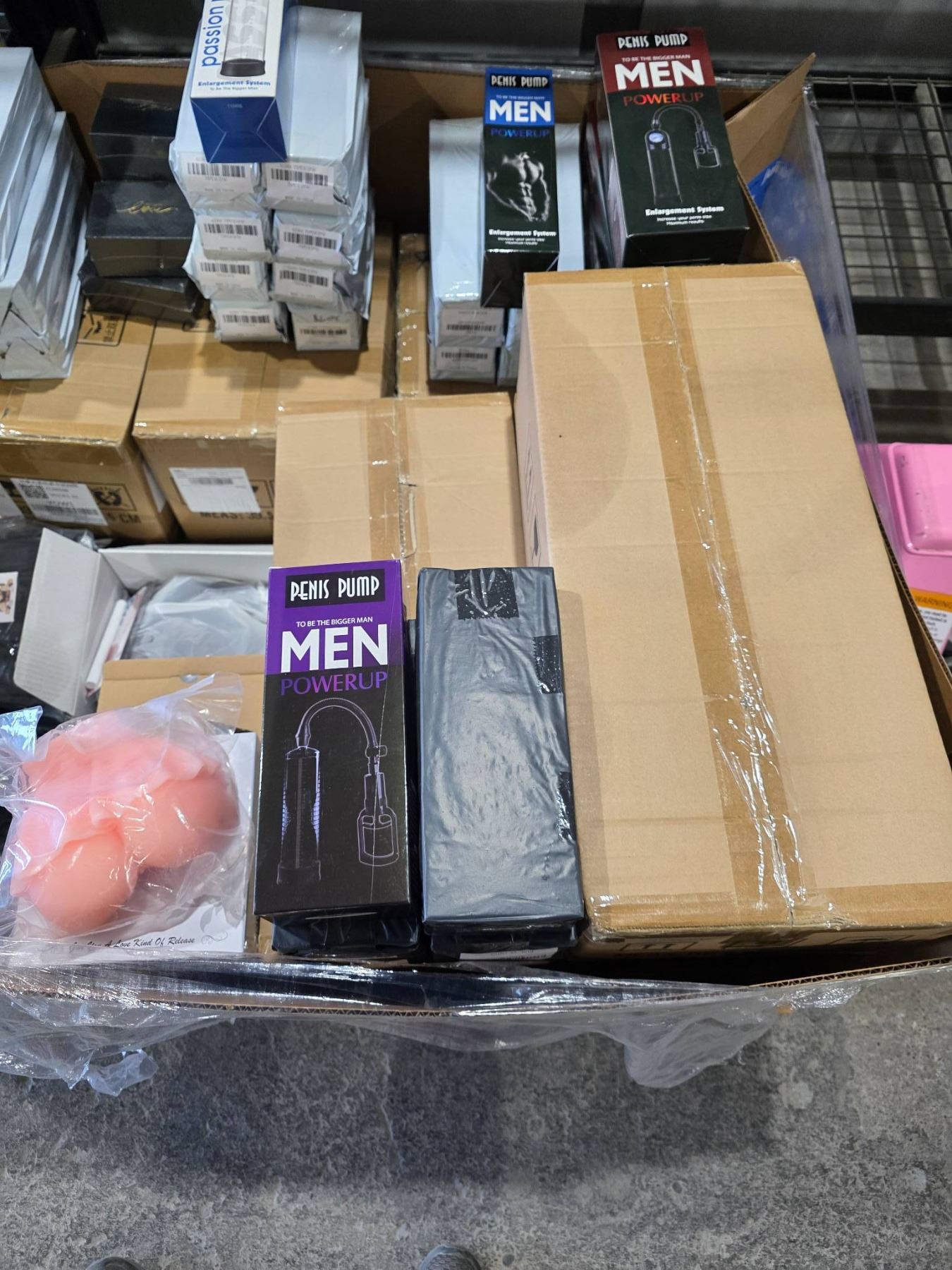 Pallet Lot Box of Assorted Adult Toys, Pumps, Silicone Fetish Toys in various sizes styles and colors. *Some items not photographed due to graphic nature*