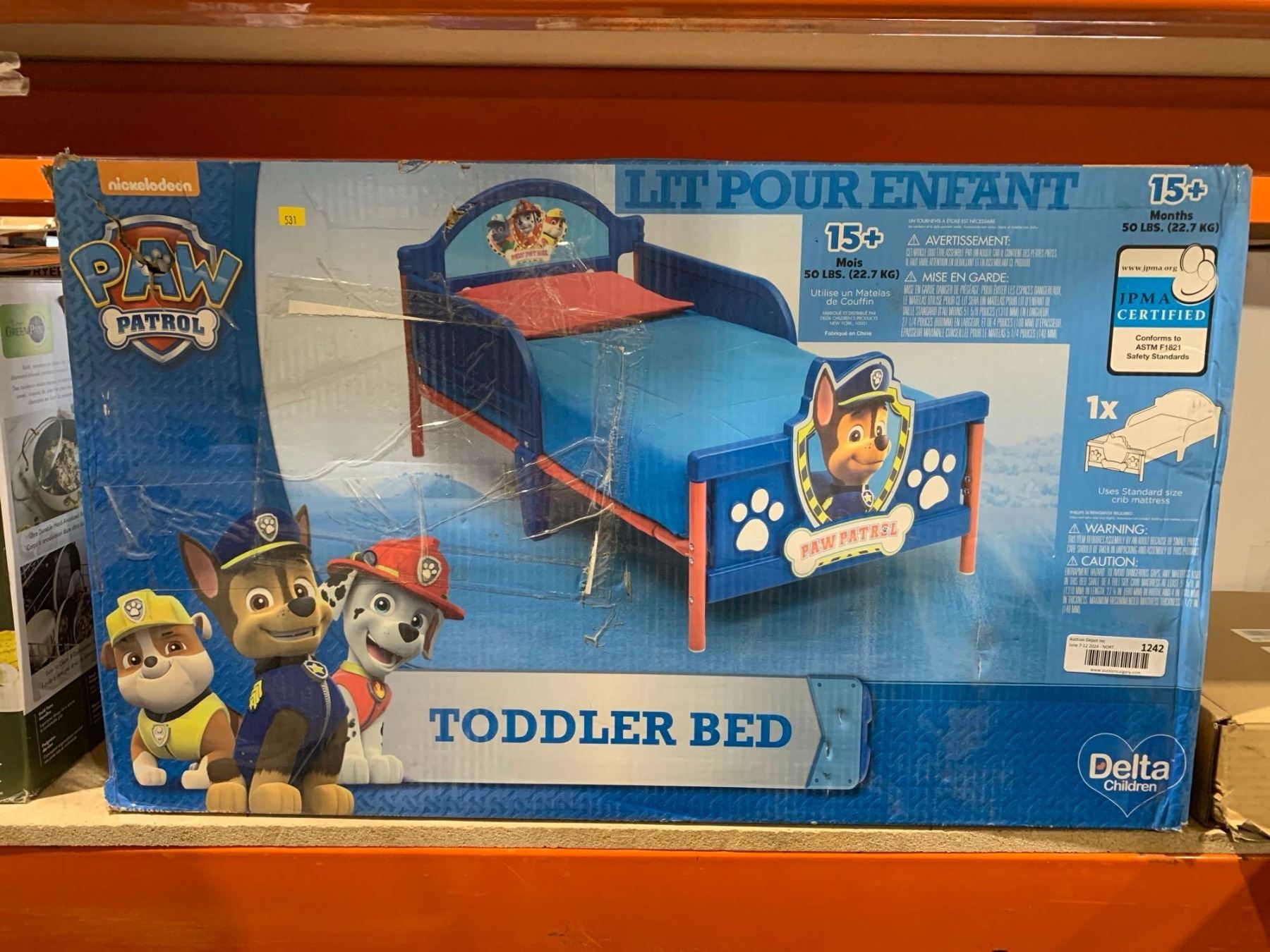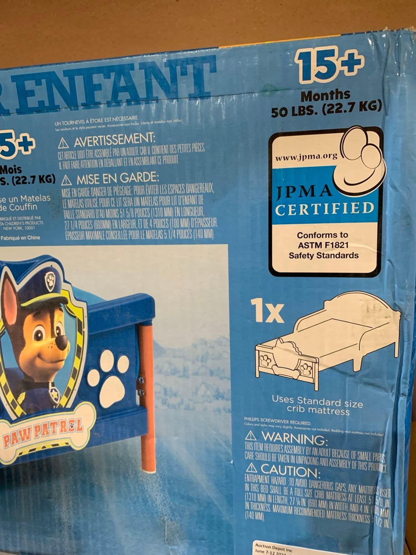 Paw Patrol Toddler Bed 15+ Months or 50Lbs Uses Standard Size Crib Mattress