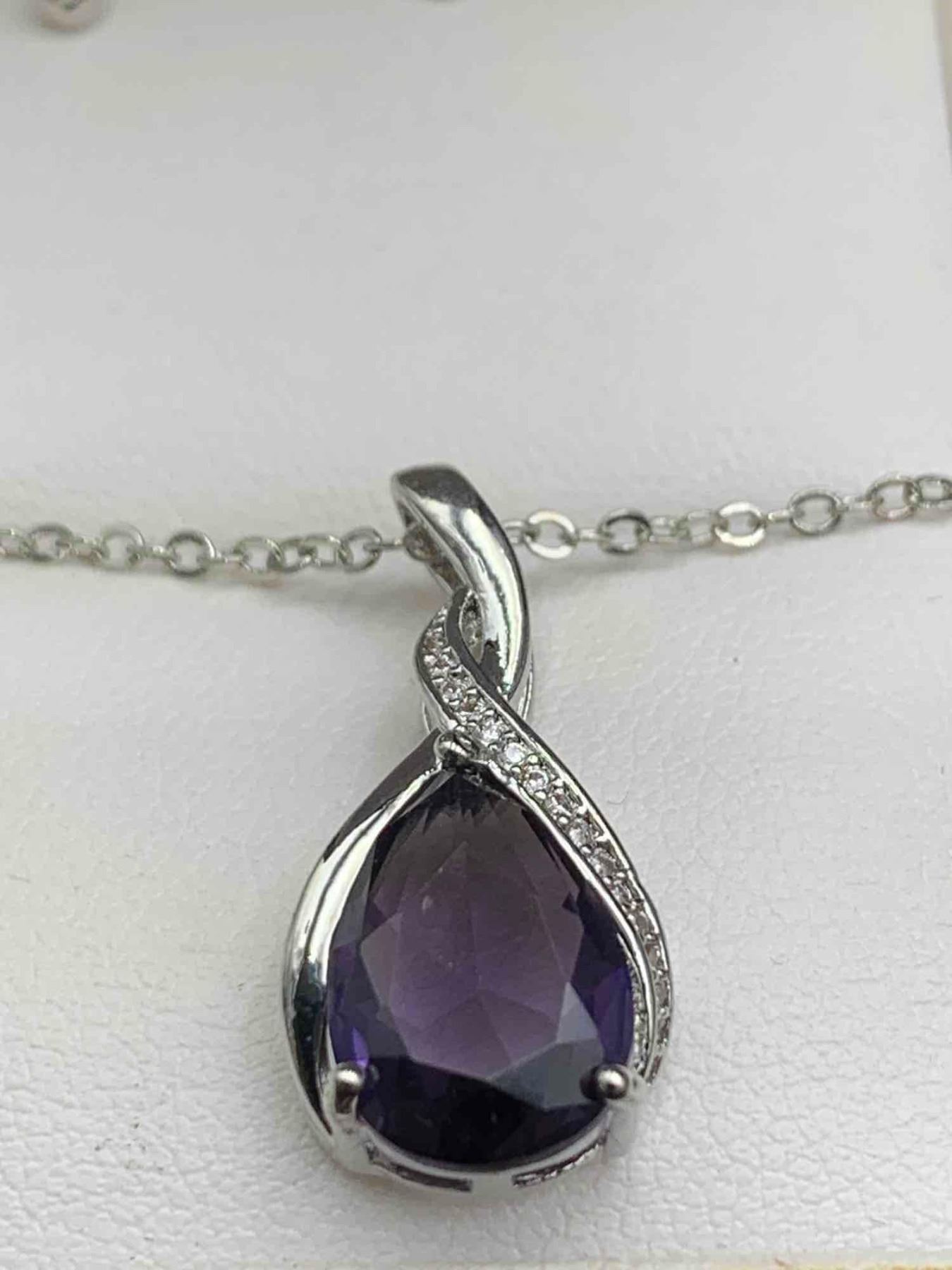 Pear Cut Amethyst Tear Drop Solitaire Pendant & Chain SIlver Gift Set