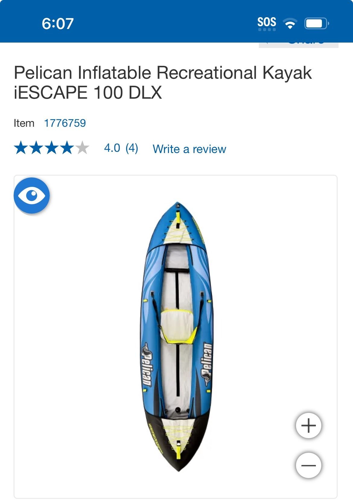 Pelican Inflatable Recreational Kayak iEscape 100 DLX with Accessories