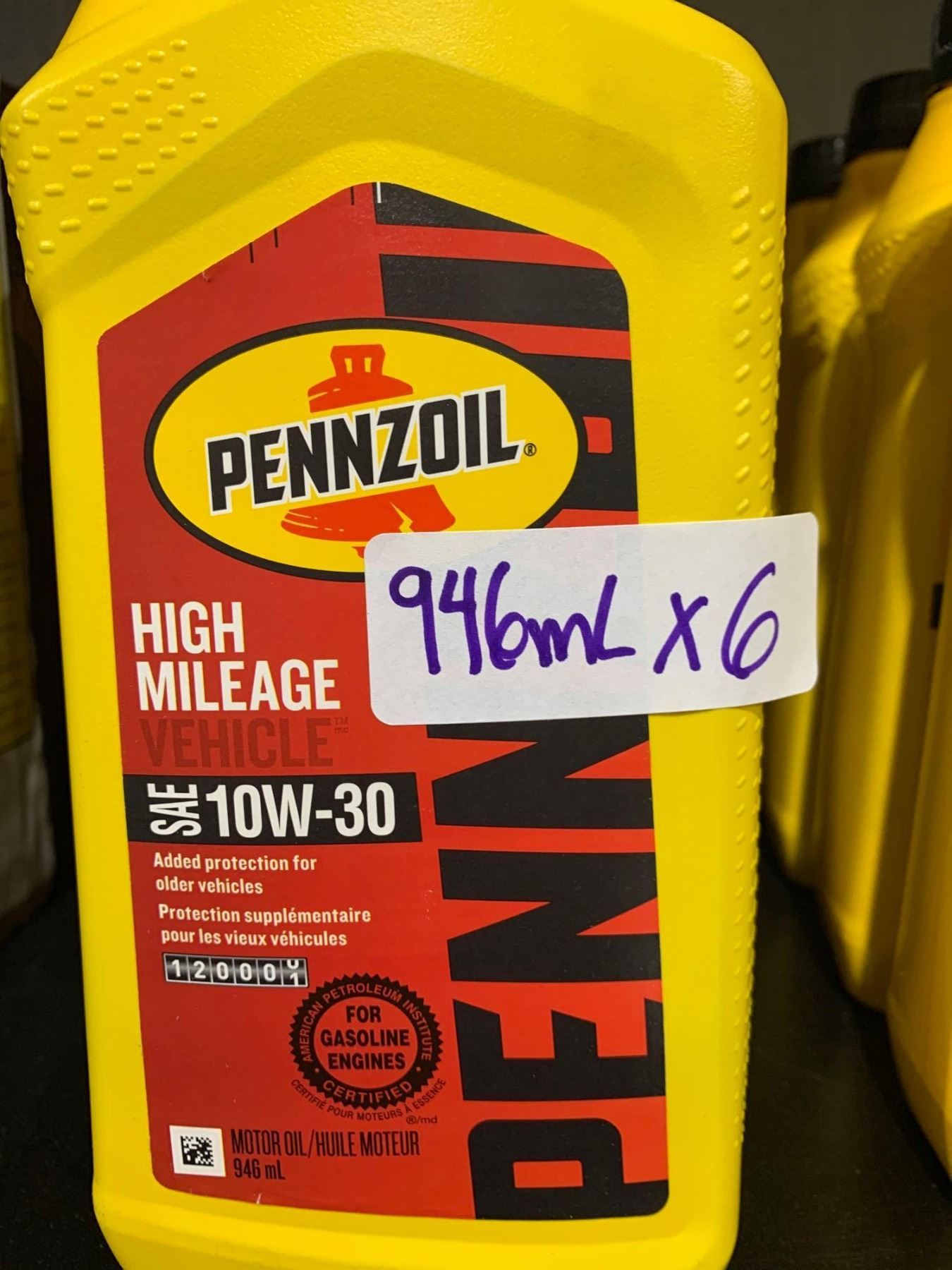 Pennzoil High Mileage SAE10W-30 Motor Oil - 6x946ml