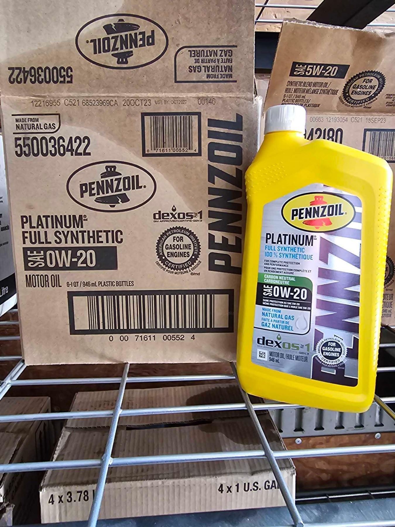 Pennzoil SAE 0W-20 Platinum Carbon Neutral Full Synthetic  Motor Oil 6x946ml