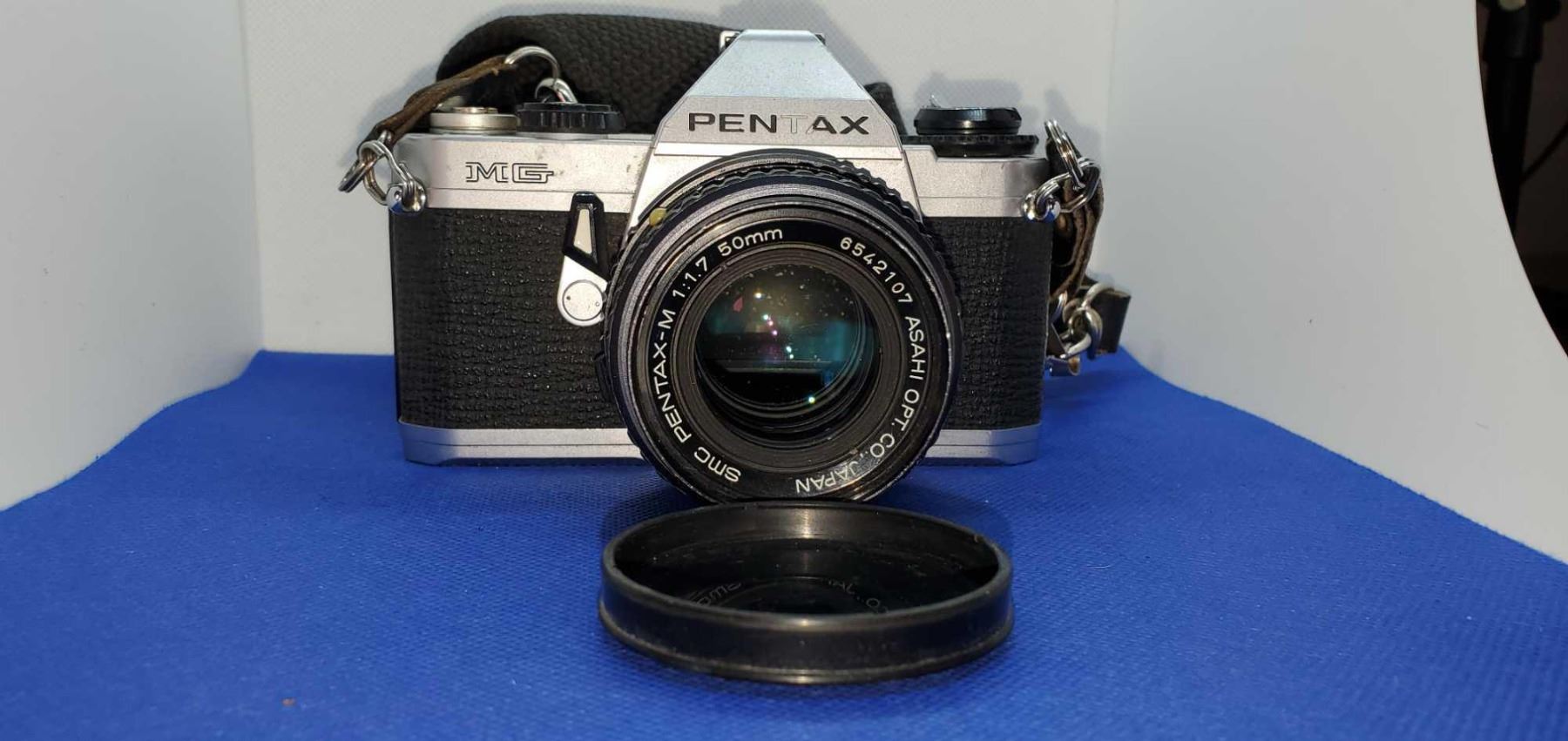 Pentax MG 35mm Camera with strap and Pentax-M 1:1.7/50 Lens