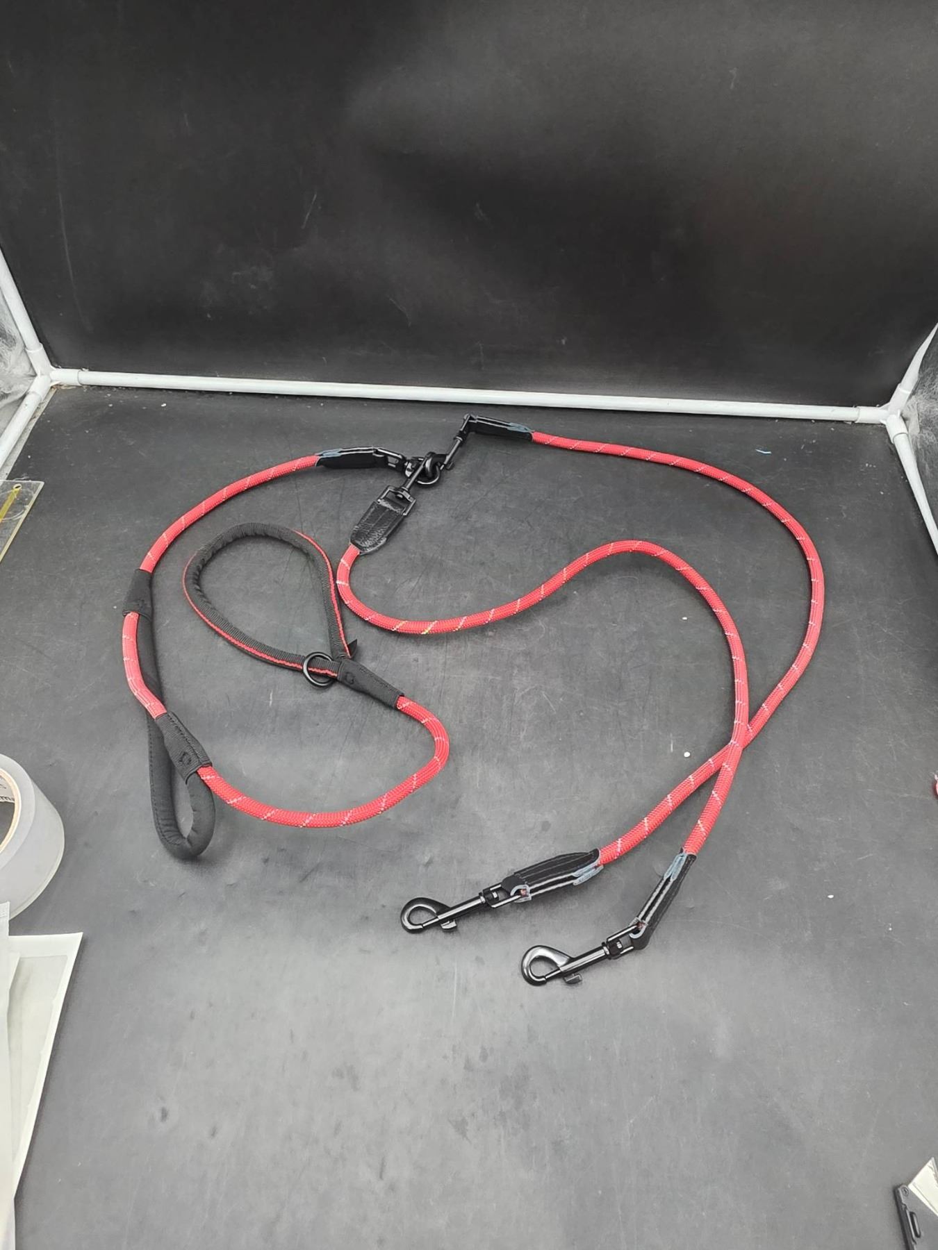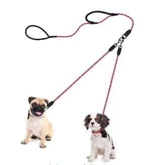 PetBonus Rope Double Dog Leash, 1/3 Inch x 6.5 Feet, Red