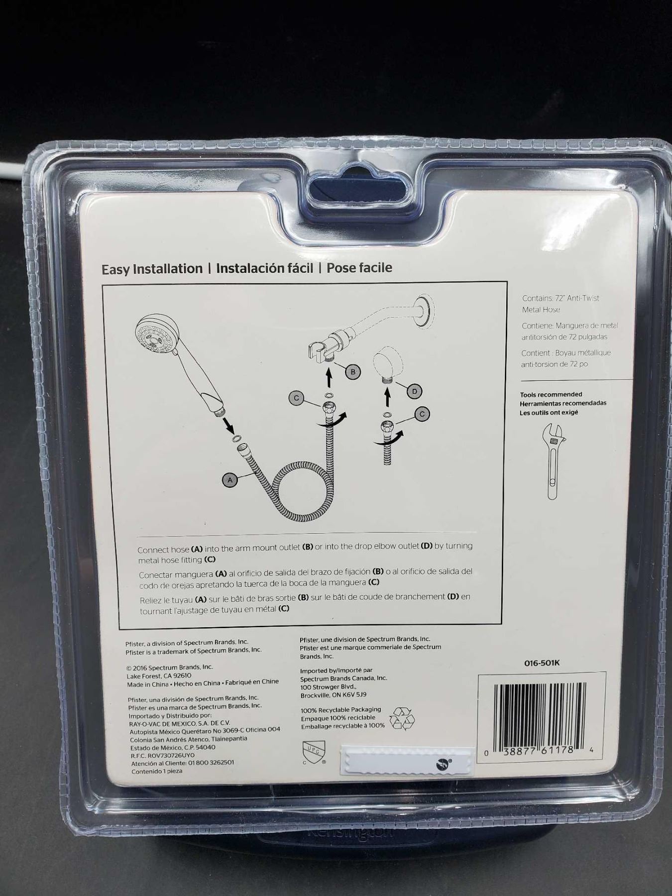 Pfister D16-501K Brushed Nickel Finish 72in Anit-Twist Metal Hose