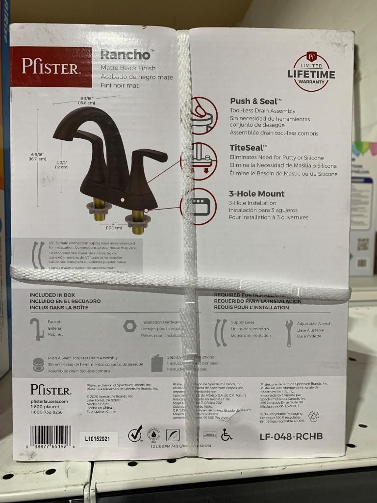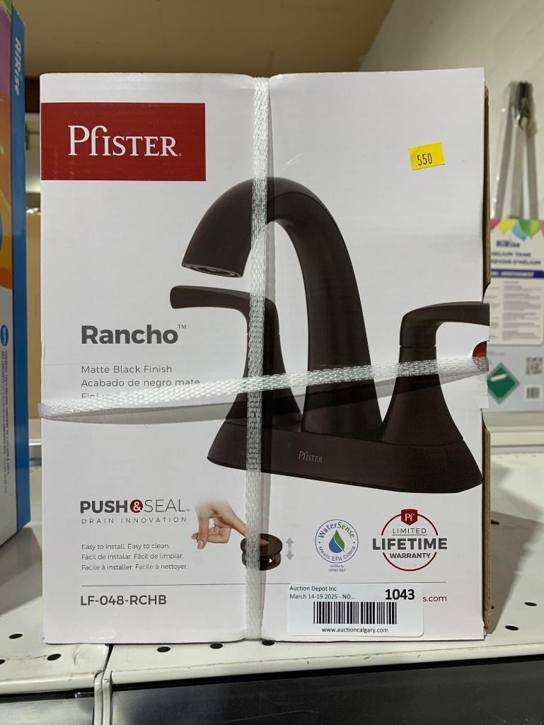 Pfister Rancho Double Handle 4-in Centreset Bathroom Sink Faucet Push & Seal™ Drain, WaterSense® Certified, Matte Black