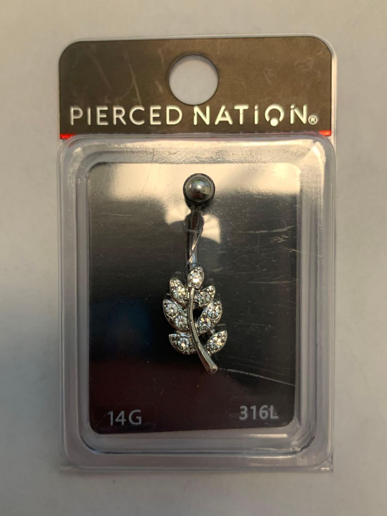 Pierced Nation 14G Silver leaf belly button ring