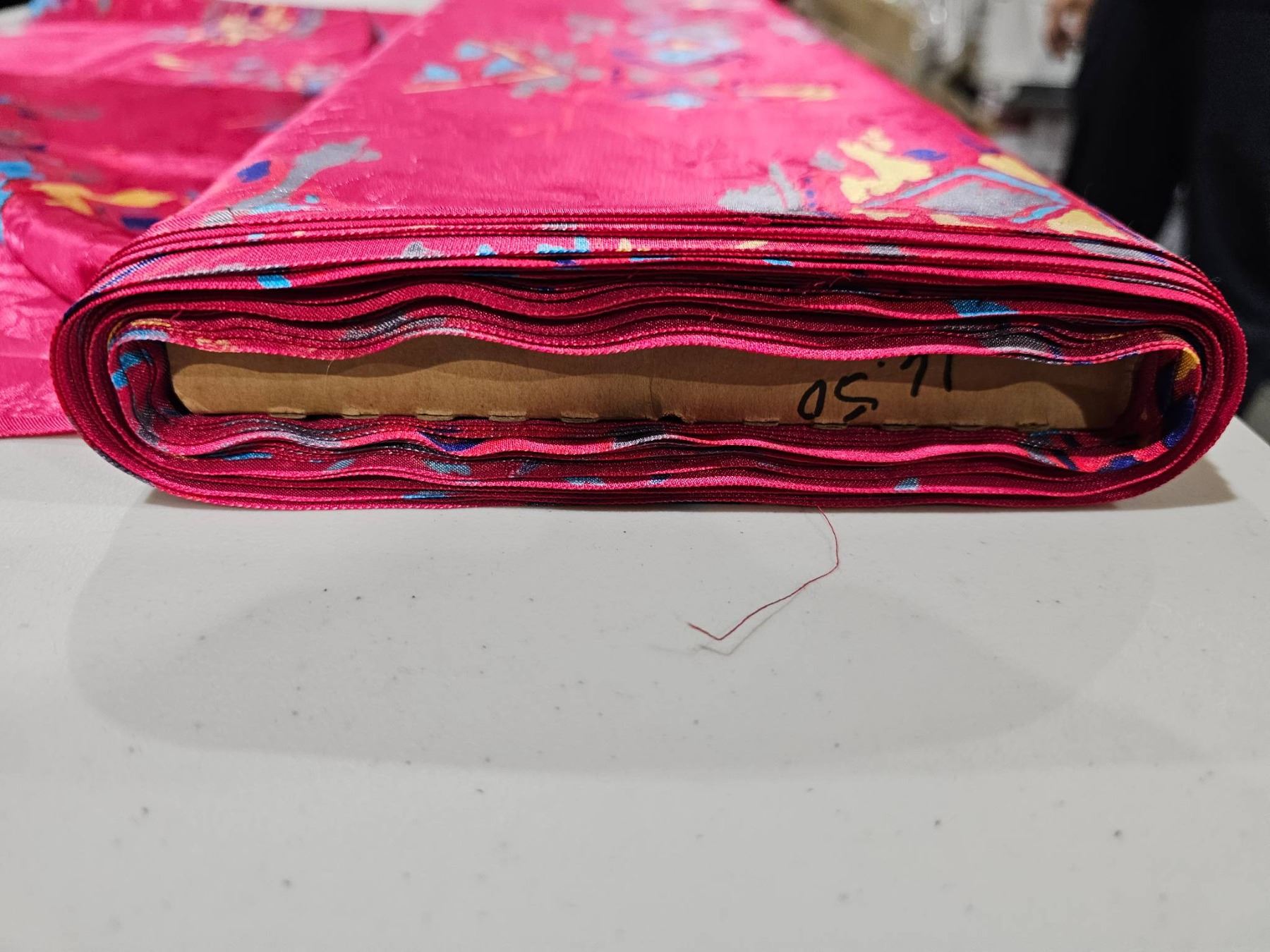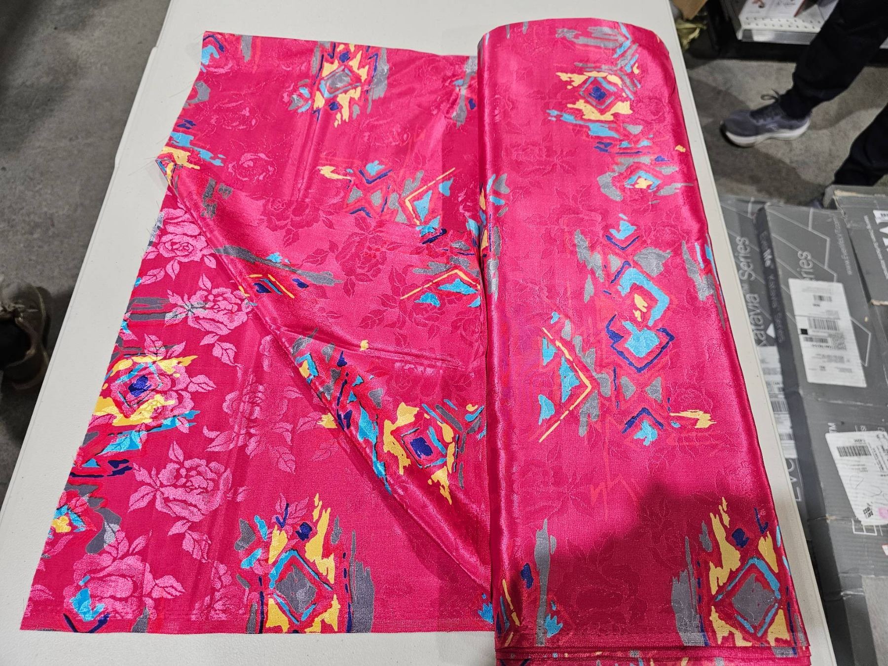 Pink and Multicolored Patterned Fabric with Geometric and Floral Designs