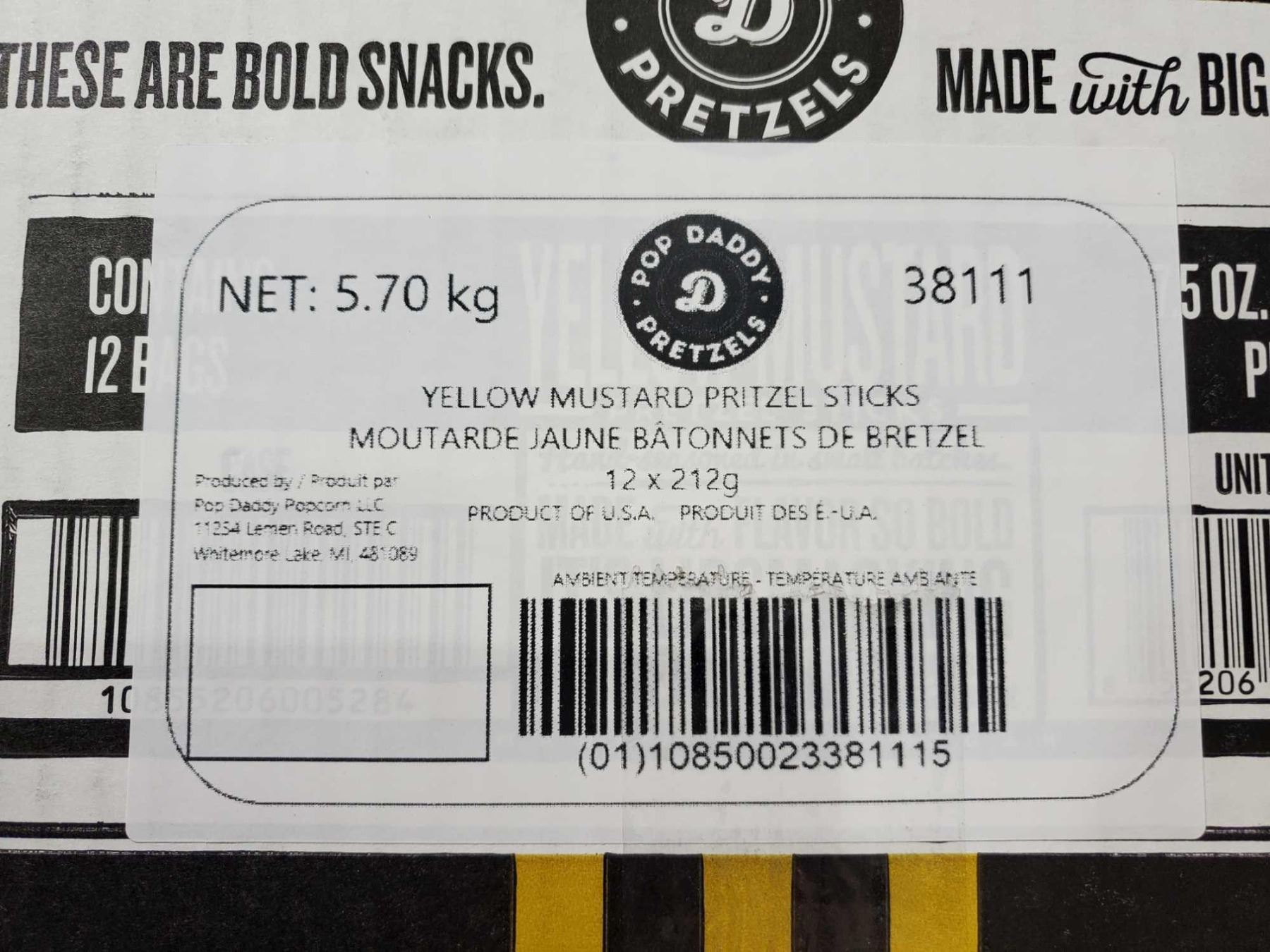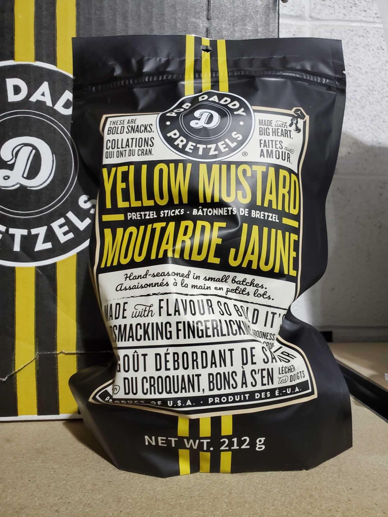 Pop Daddy Gourmet Pretzels Yellow Mustard flavour case lot of 12 x 212g