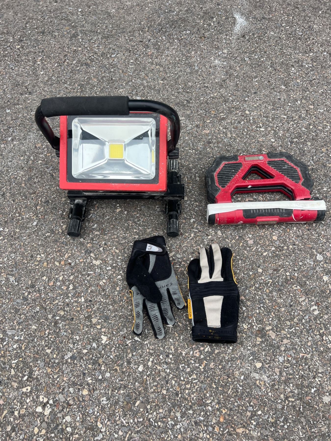 Portable LED Work Light, Red Safety Base, and Protective Gloves Set