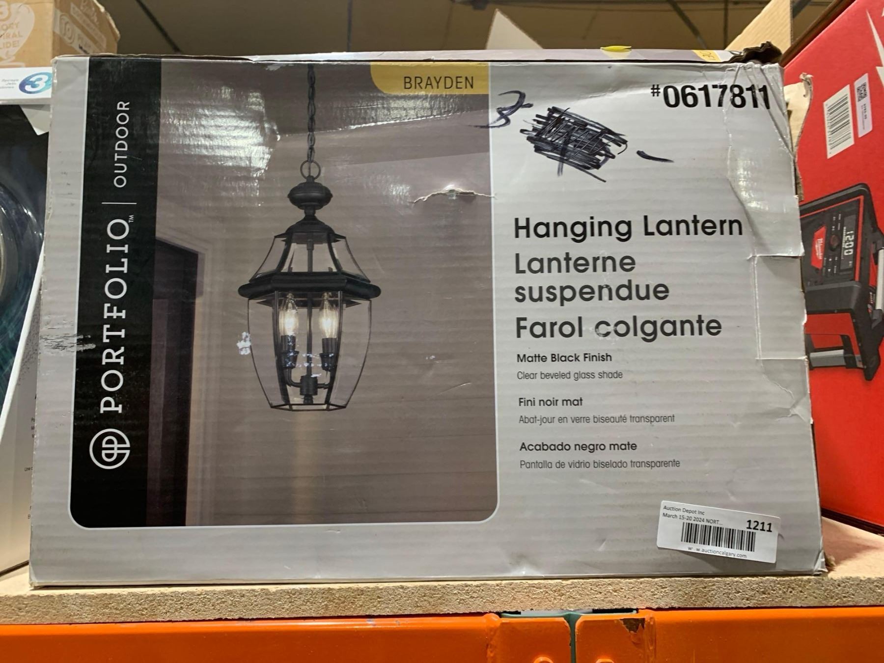 Portfolio Outdoor Hanging Lantern Matte Black Finish