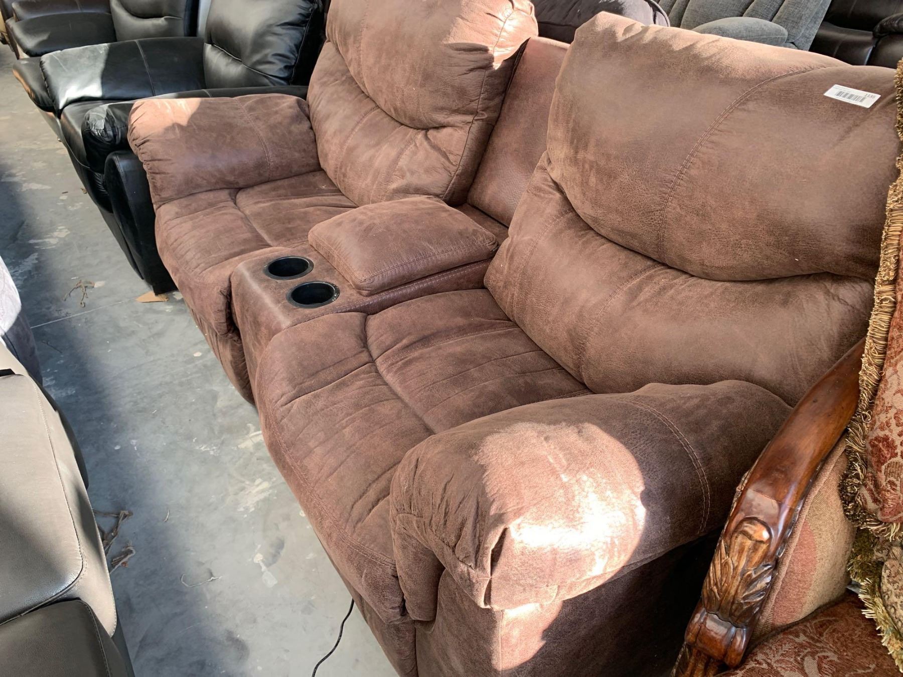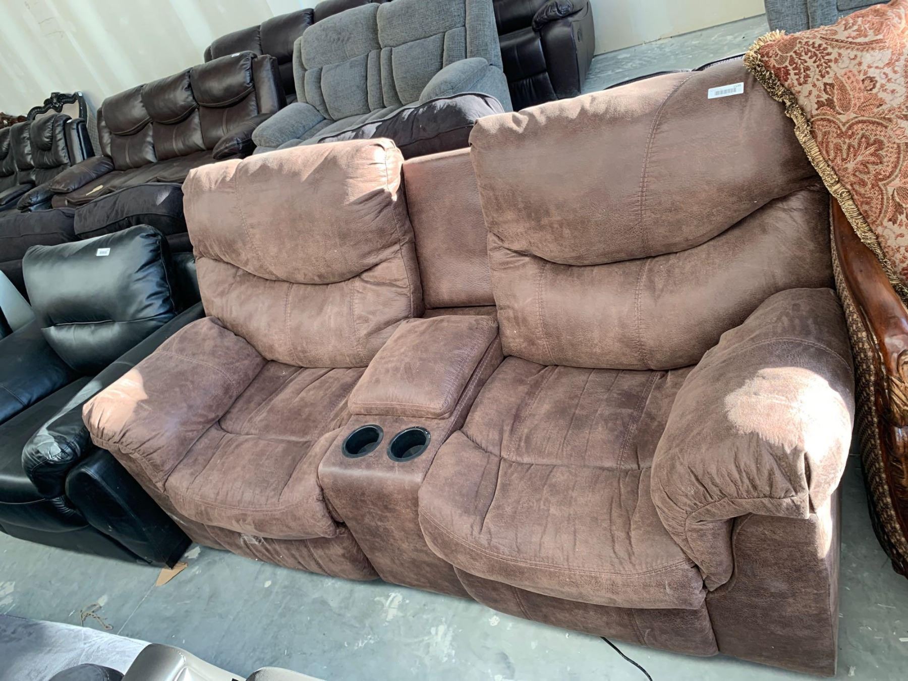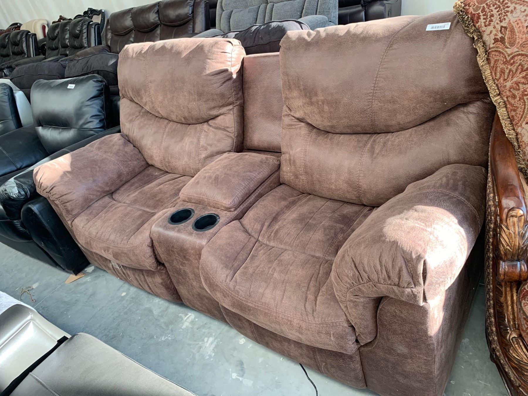 Power reclining double seat microfiber brown home theater sofa FLOOR DISPLAY MODEL- pick up Dec. 30 from 9-3, off site location 4231-109 AVE NE
