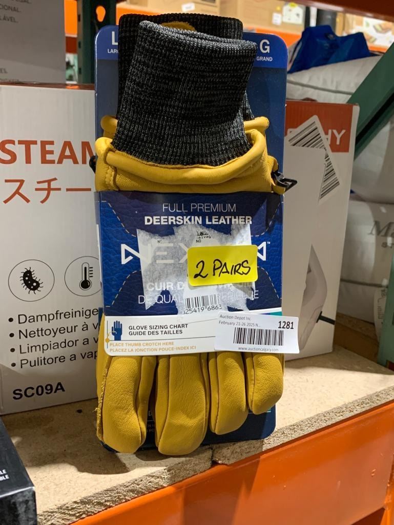 Premium Deerskin Leather Gloves, Large, 2 Pairs